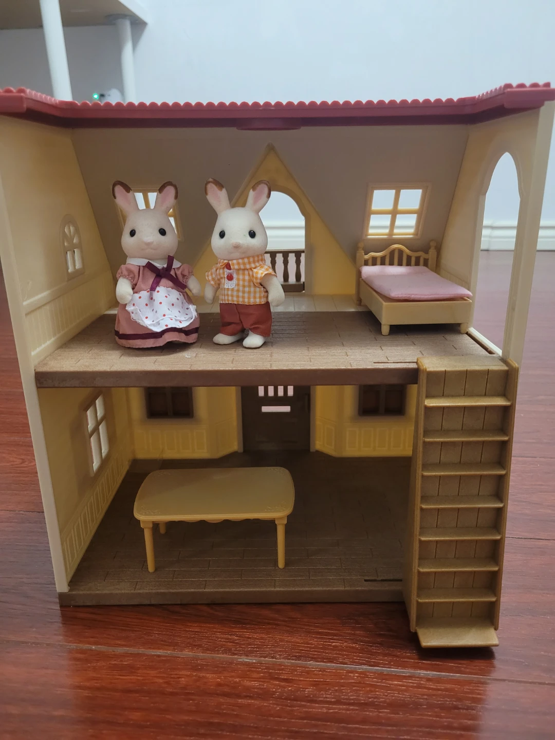 Selling a Calico Critters house with a bedroom set included . Includes all furniture also with 2 calico critters. It's in great shape and ready for a new home! Perfect for imaginative play and creating adorable stories with your Calico Critters families.