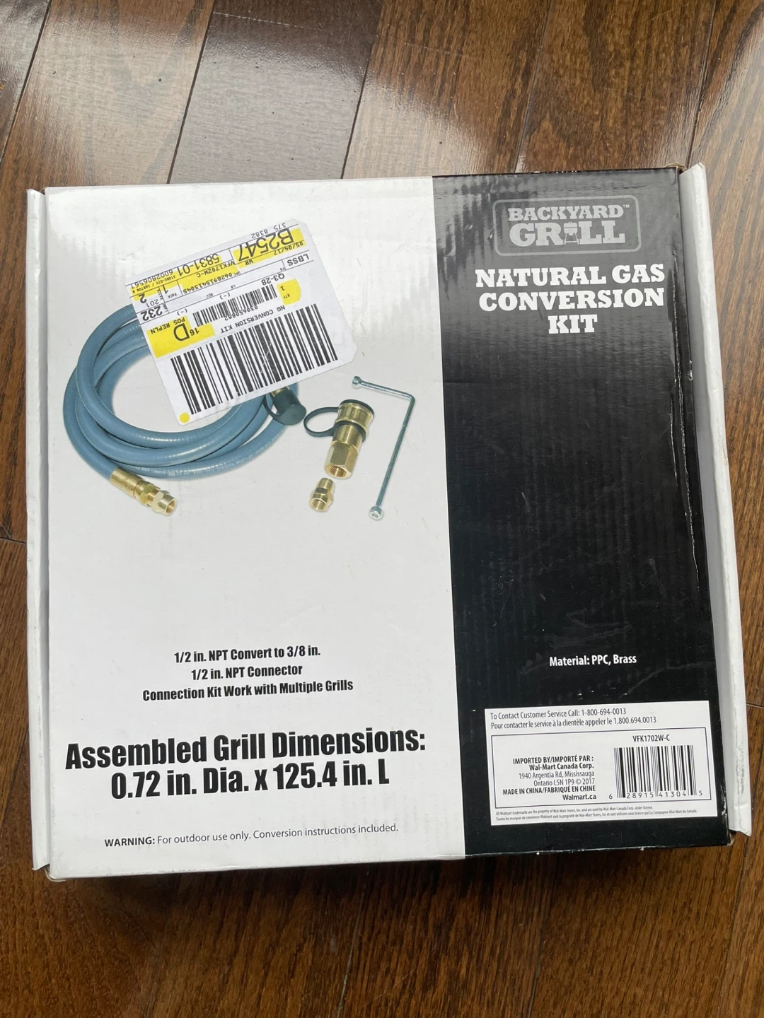 Selling a brand new Backyard Grill natural gas conversion kit! This kit is designed to convert your grill to natural gas. It includes a 1/2 in NPT to 3/8 in NPT connector, making it compatible with multiple grills. The assembled grill dimensions are 0.72 in in diameter x 125.4 in in length. Conversion instructions are included in the box