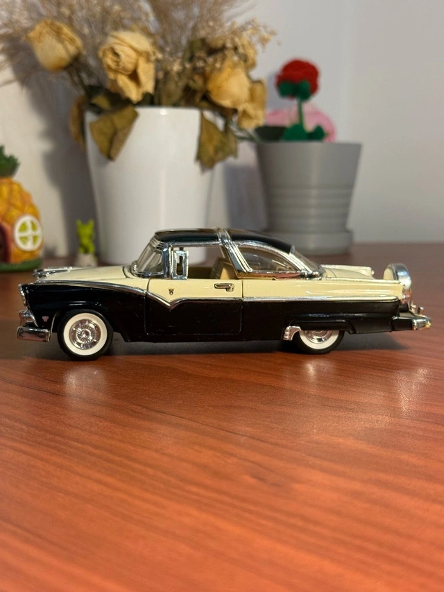 This is a stunning, highly-detailed diecast model of a classic 1955 Ford Fairlane Crown Victoria. Scale: 1:24. Color: Two-tone Black and Cream/White. Material: Diecast metal with plastic accents. Condition: Appears to be in excellent condition, suitable for display. Features: Detailed interior, chrome accents, rolling wheels with whitewall tires. Condition: Used - Good. For Sale By: Owner. Curbside pick up: Yes. Cash accepted: Yes.