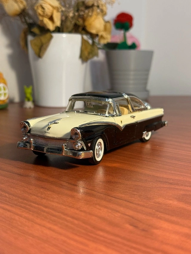This is a stunning, highly-detailed diecast model of a classic 1955 Ford Fairlane Crown Victoria. Scale: 1:24. Color: Two-tone Black and Cream/White. Material: Diecast metal with plastic accents. Condition: Appears to be in excellent condition, suitable for display. Features: Detailed interior, chrome accents, rolling wheels with whitewall tires. Condition: Used - Good. For Sale By: Owner. Curbside pick up: Yes. Cash accepted: Yes.