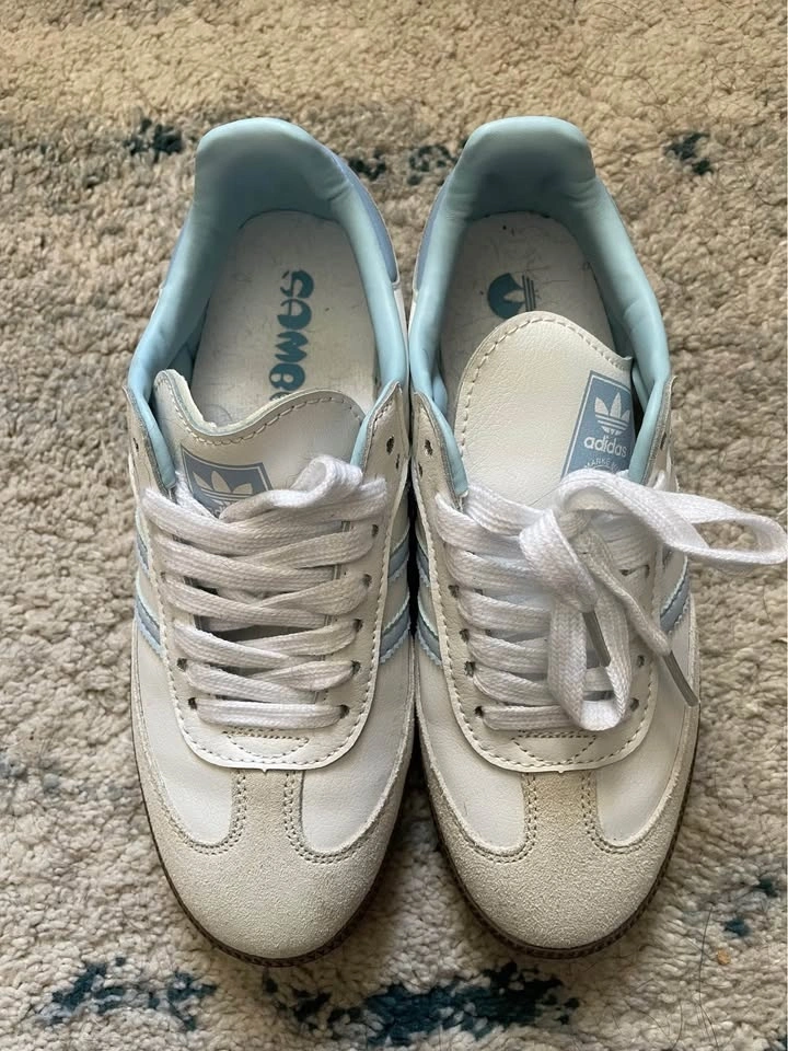 W 5.5 Adidas Samba Sneakers White Light Blue
