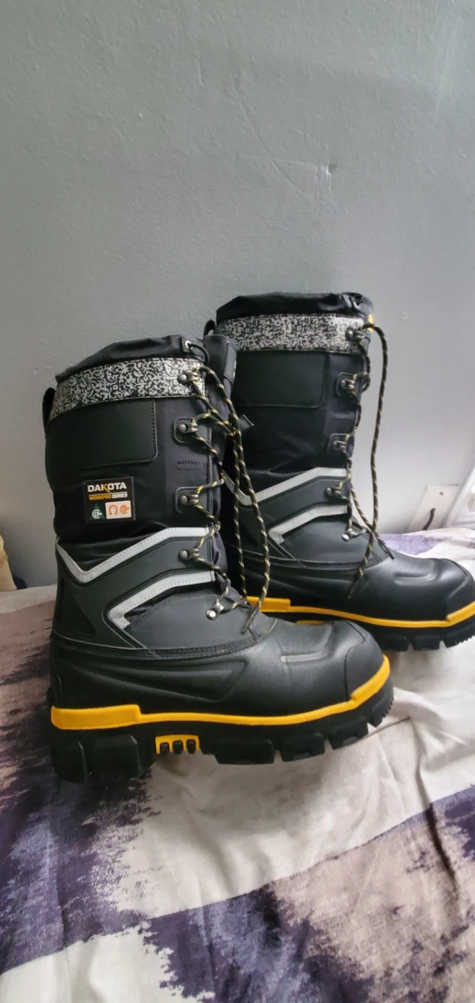 Selling a pair of Dakota Workpro winter boots in size 8. They're in great shape and ready to keep your feet warm and dry this winter! These boots are made in Cambodia with a fabric upper and feature a durable design for tough conditions