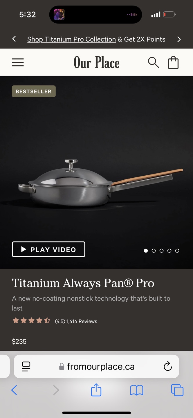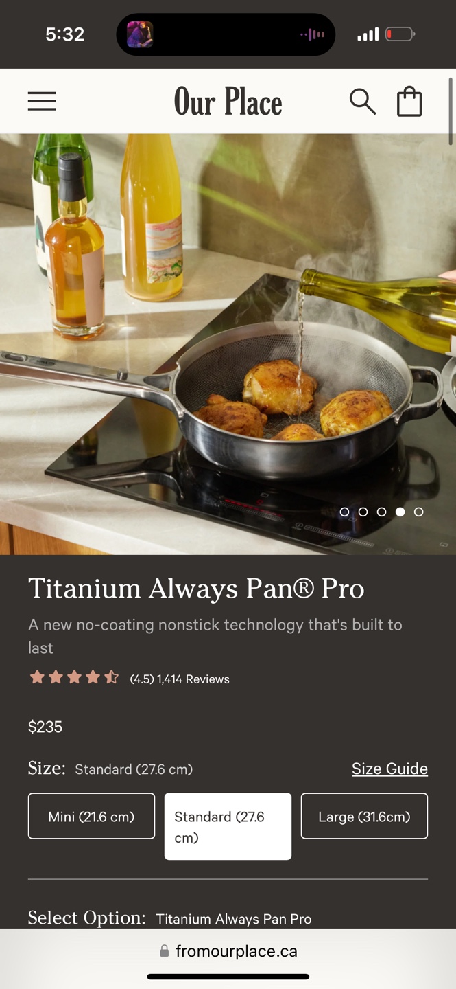 Always Pan Pro in titanium. Durable nonstick technology. Brand new in box still . Size: Standard (27.6 cm). https://fromourplace.ca/products/titanium-always-pan-pro