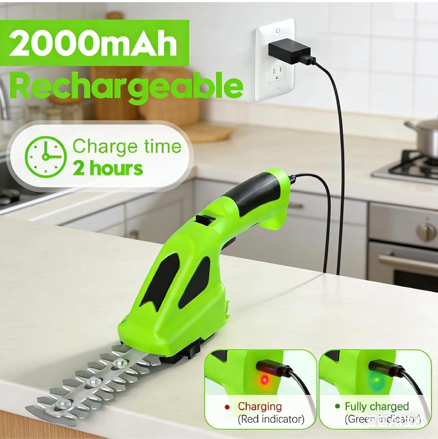Cordless Hedge Trimmer & Grass Shears, 2 in 1 Electric Hedge Clippers/Grass Trimmer, Battery Hand Grass Cutter Bush Trimmer, 7.2V Hedge Shears for Gardening, Lawn, Yard
