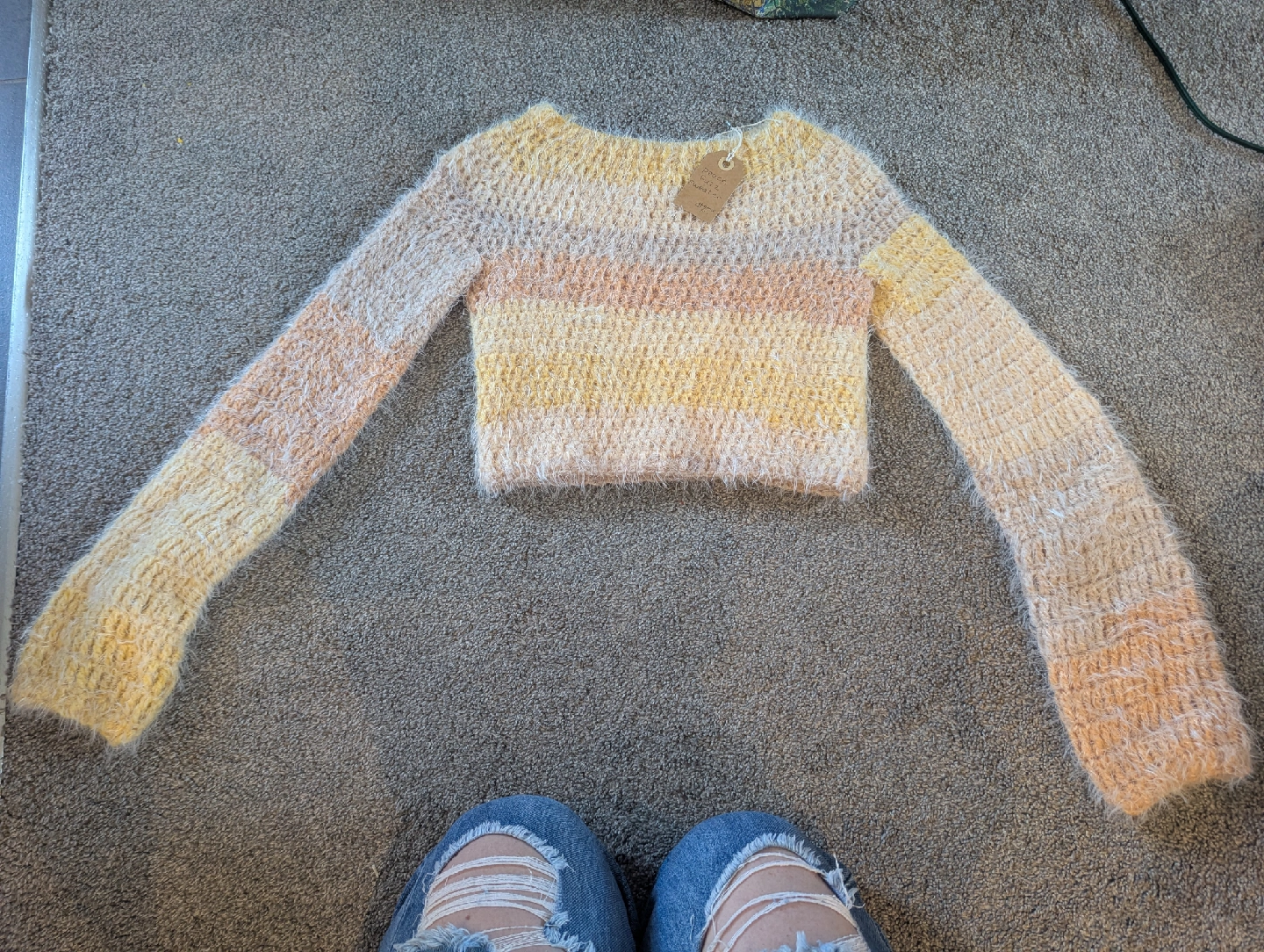29Selling a cute peach fuzz sweater! It's a lovely blend of peach and yellow tones with a soft, fuzzy texture. Originally bought for $25. It's a little too small for me, or else I would be wearing it right now.