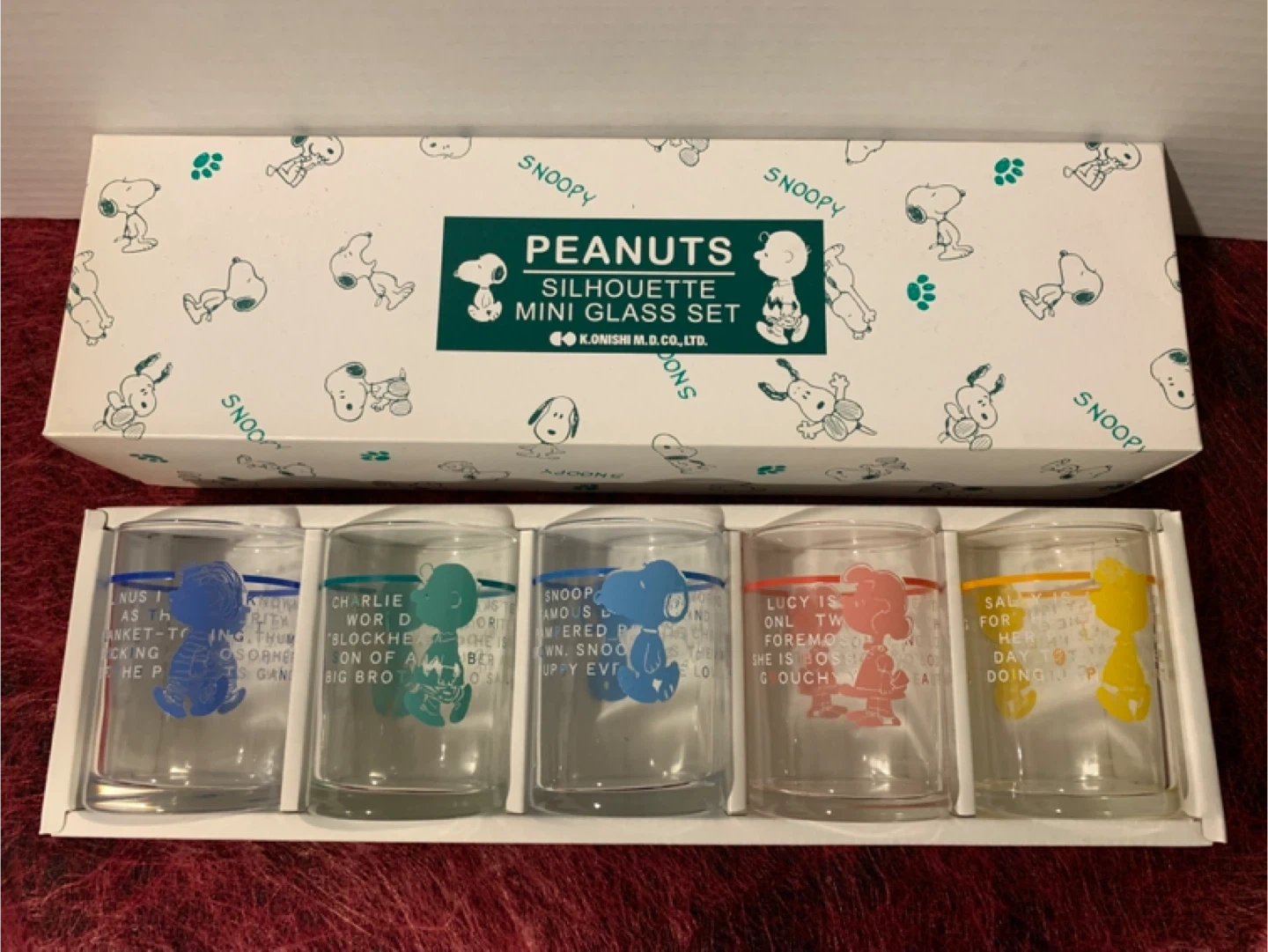 65Brand new in box - PEANUTS set of 5 glasses featuring Charlie Brown, Snoopy, Lucy, Linus and Sally. Made in Japan Silhouette Free cup Glass set and Silhouette Mini Glass set Each glass measures 8cm in height Asking for $40 per set Or $70 for both - if you want more than one of the same style, let me know. Meet up at Vancouver Marpole or Marine Gateway locations.