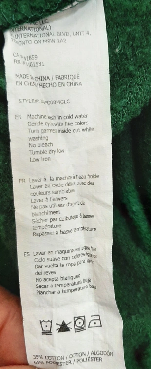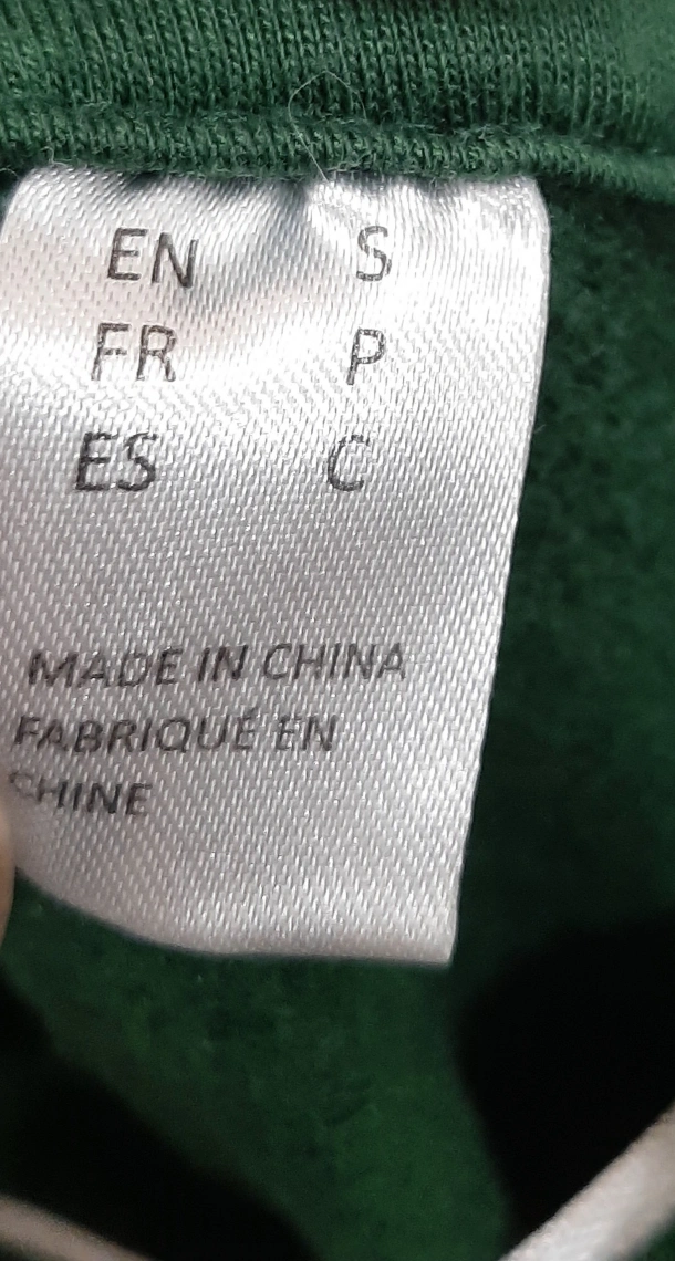 Here's a comfy Peanuts sweatshirt featuring Snoopy! It's a size small and comes in a lovely green colour. The material is 35% cotton and 65% polyester. Perfect for lounging around or casual wear!