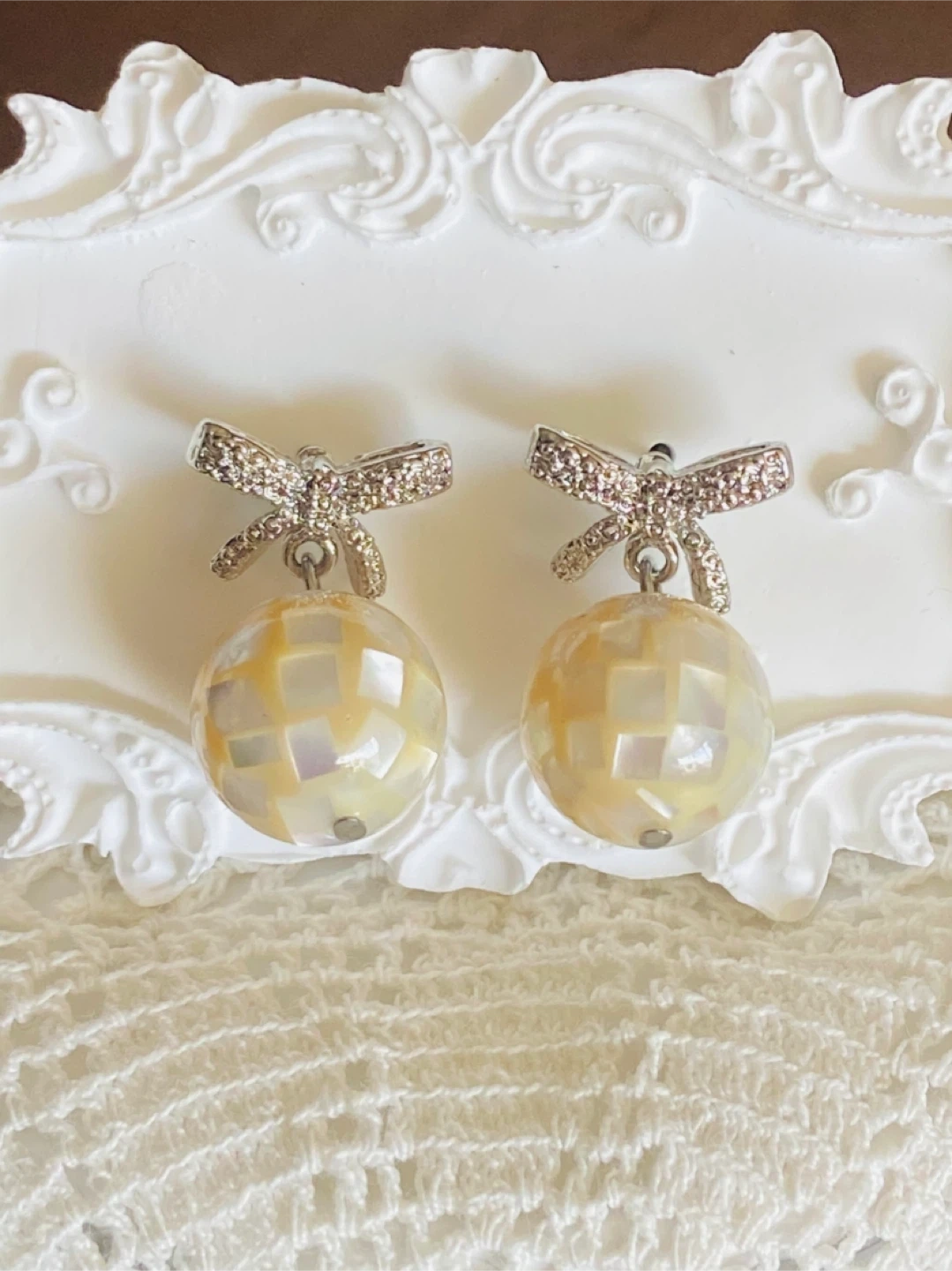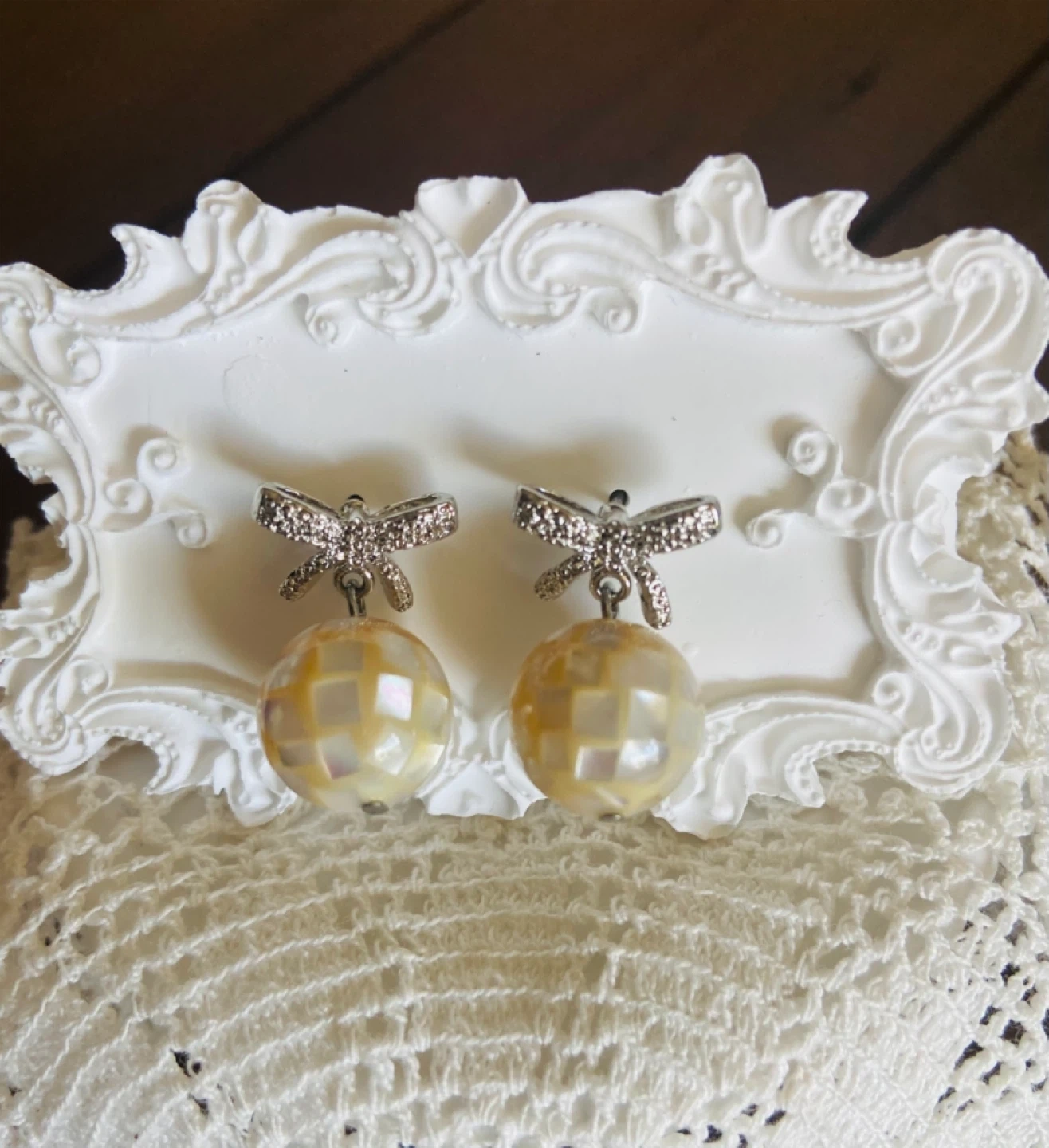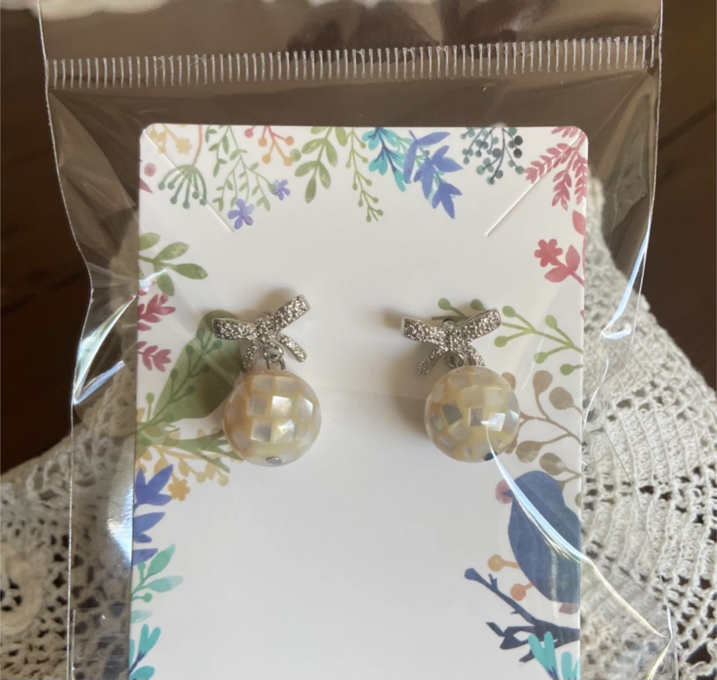 10These are a pair of pearl ball earrings with a cute bow accent. They're in great condition and ready to add a touch of elegance to your outfit!