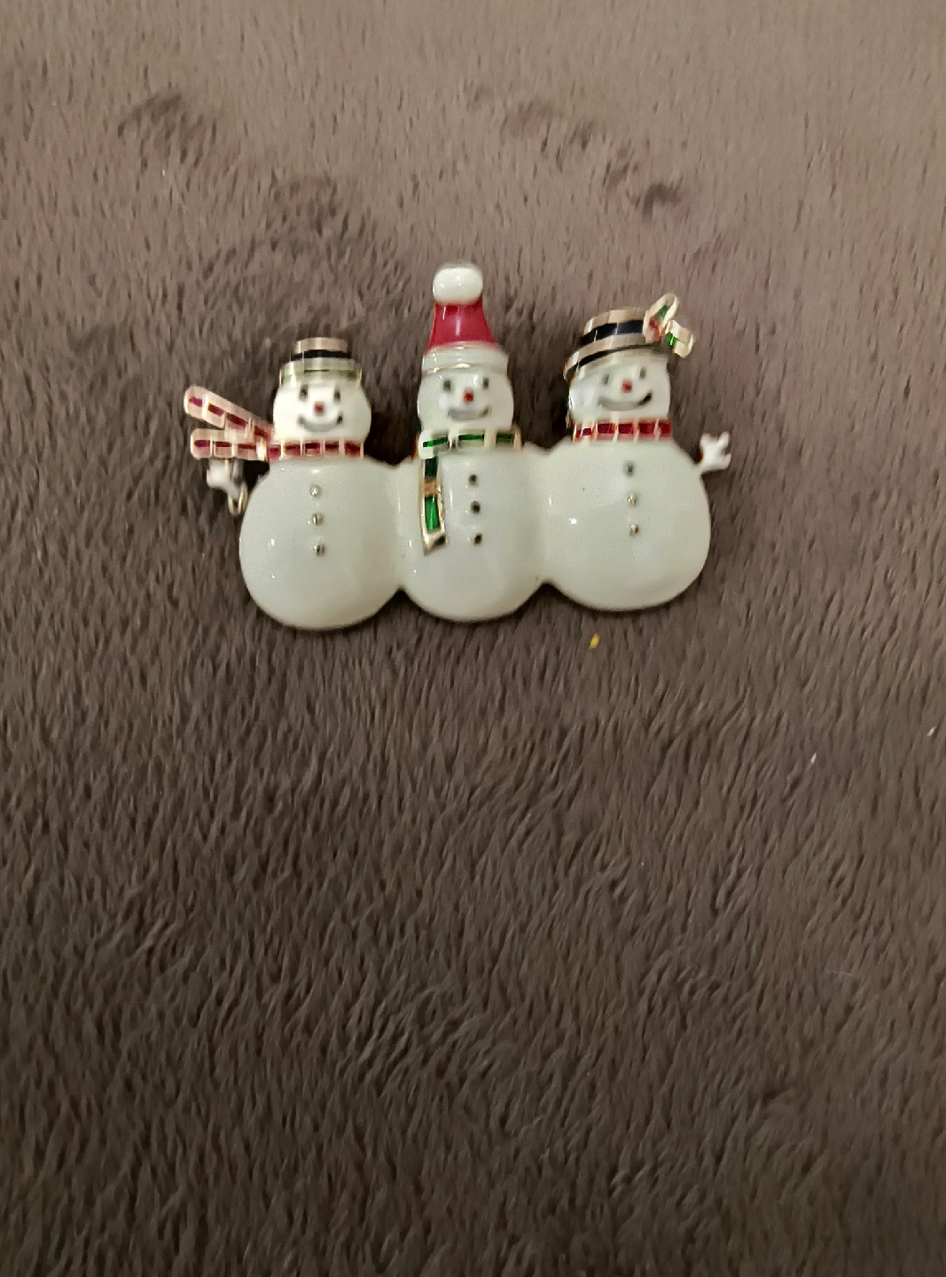 Selling a cute pearl and crystal bracelet with a snowman charm! It's in great condition and would be perfect for the winter season. Also includes a snowman pin!