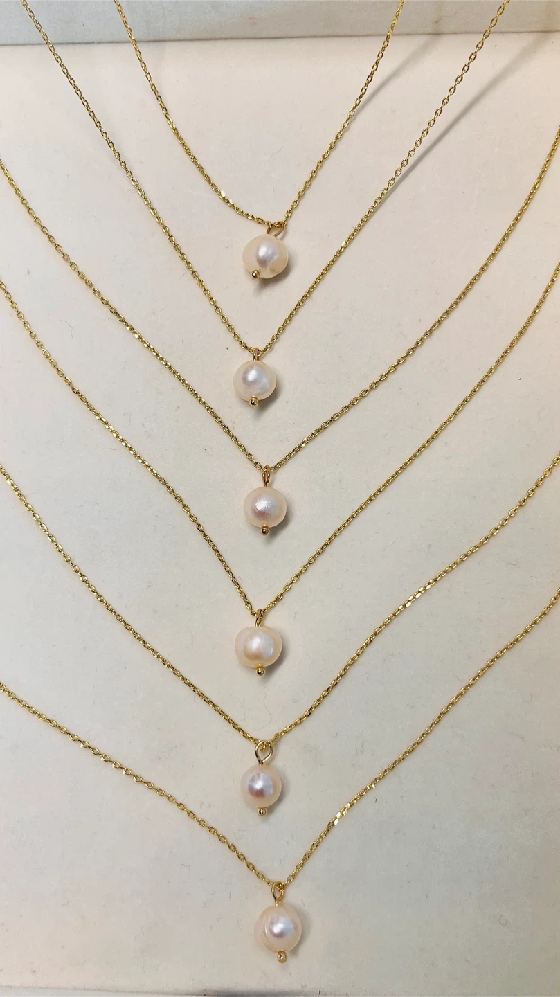70Simple and elegant pearl pendant necklace with a delicate gold chain. Perfect for everyday wear or dressing up for a special occasion. The pearl has a beautiful luster and the gold chain is dainty and shiny. A classic piece to add to your jewelry collection!