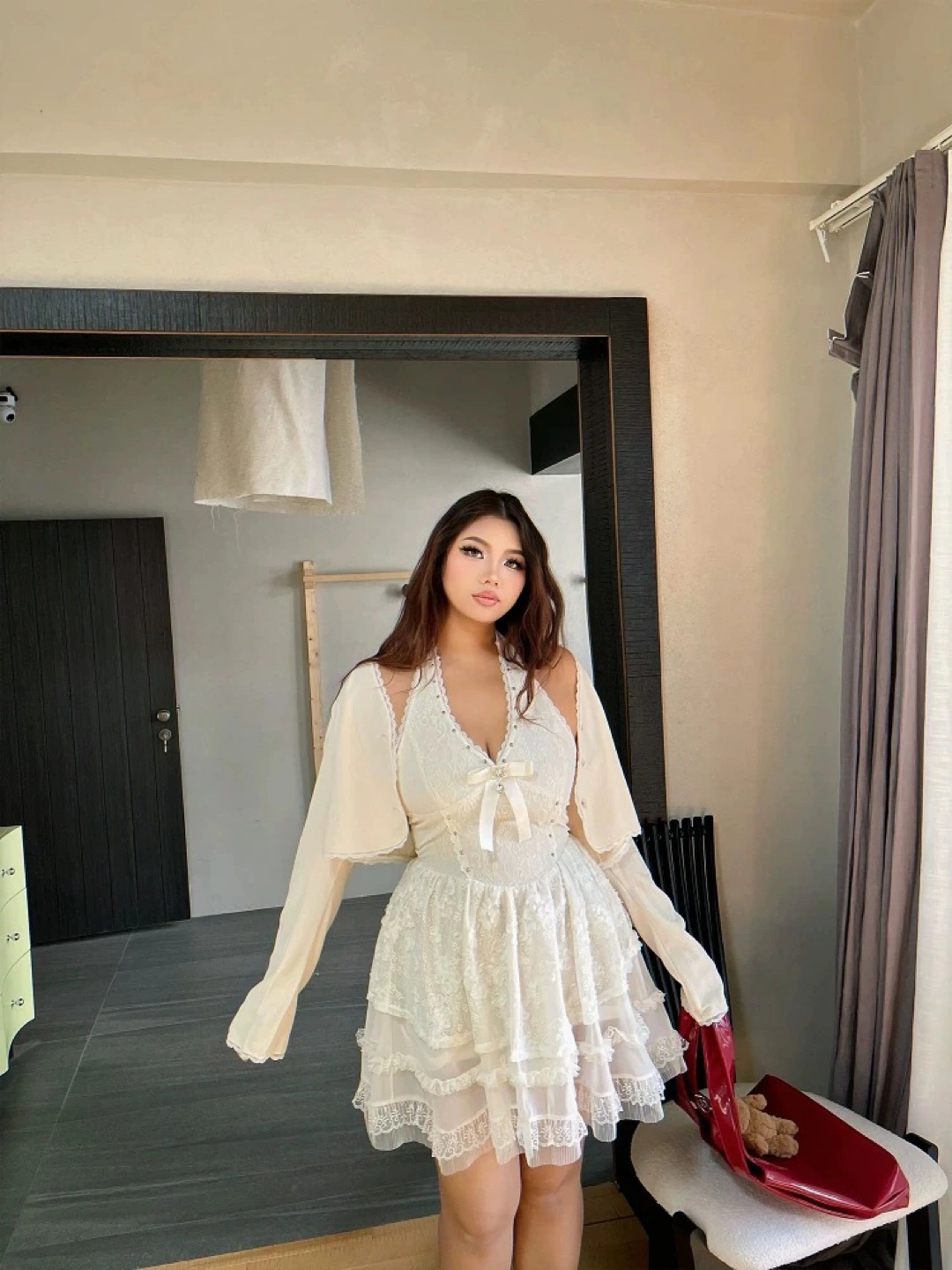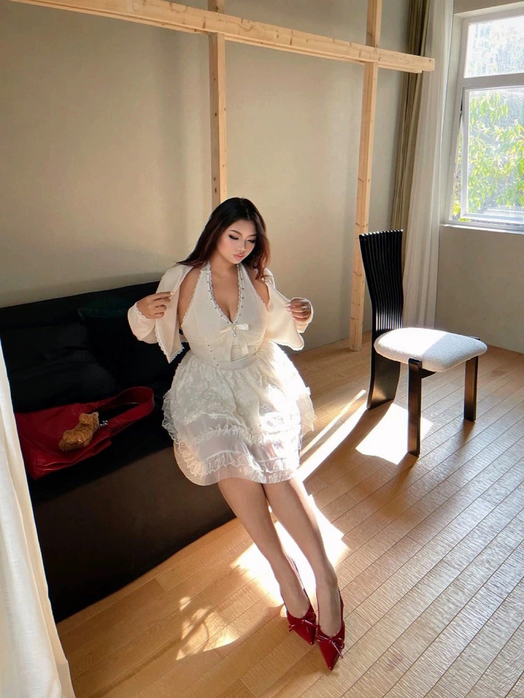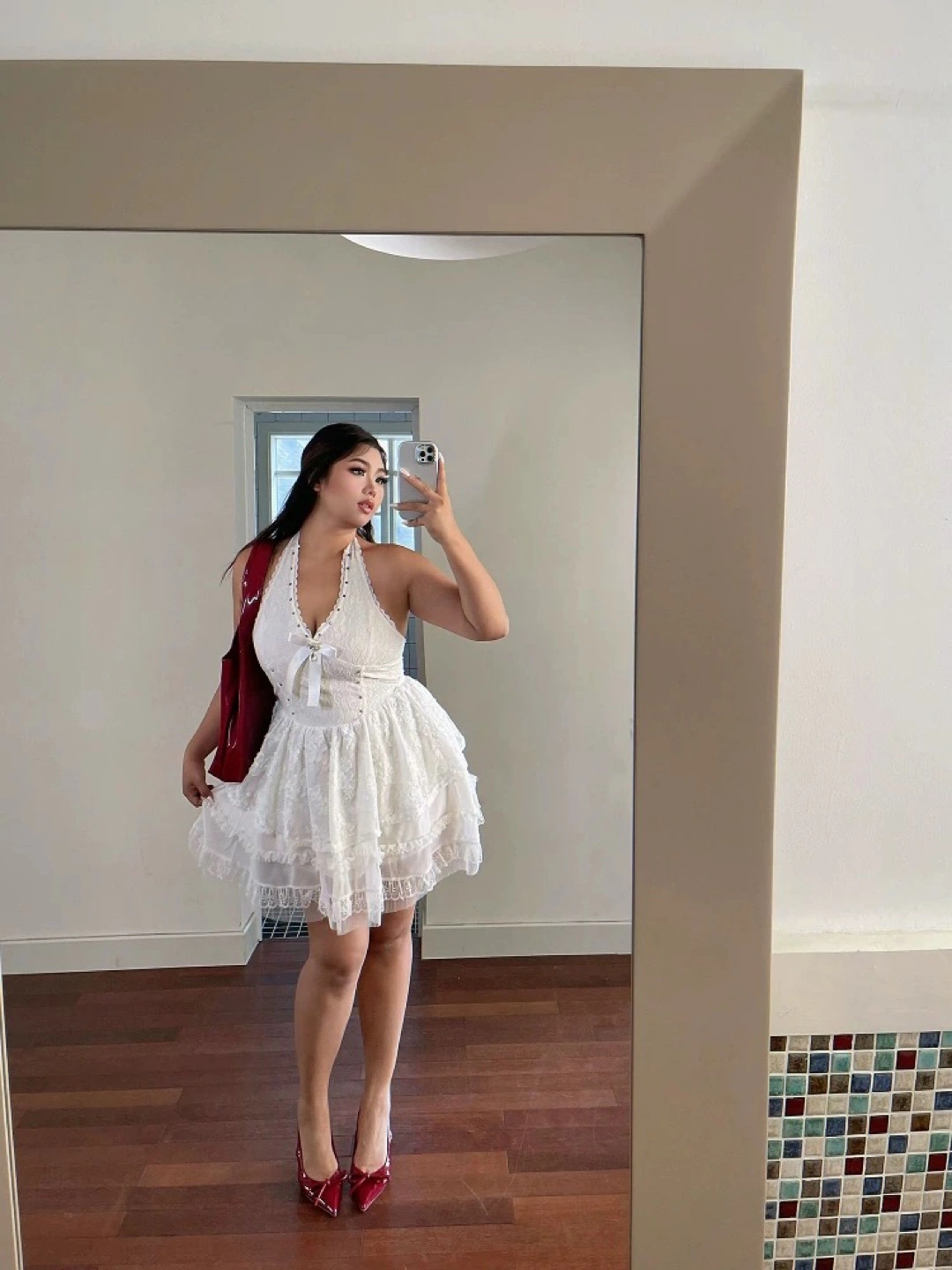 โจ Romantic & refined ๐ค Our bestselling lace halter dress now comes with layered ruffles, ribbon jewel detail & dreamy soft mesh overlay โ flattering on every shape from M to 5XL. Perfect for brunch, dates or that picture-perfect day. Now available | $29.5