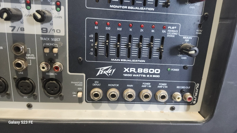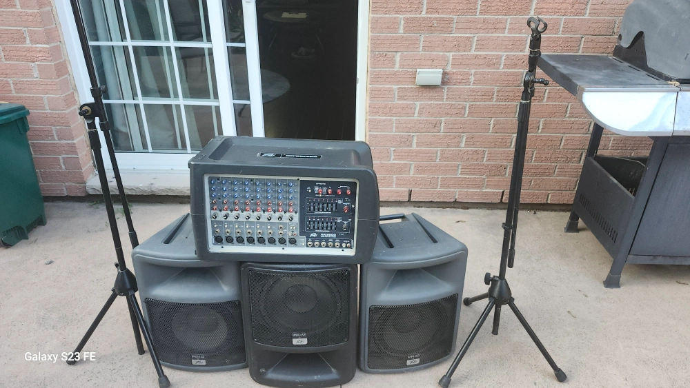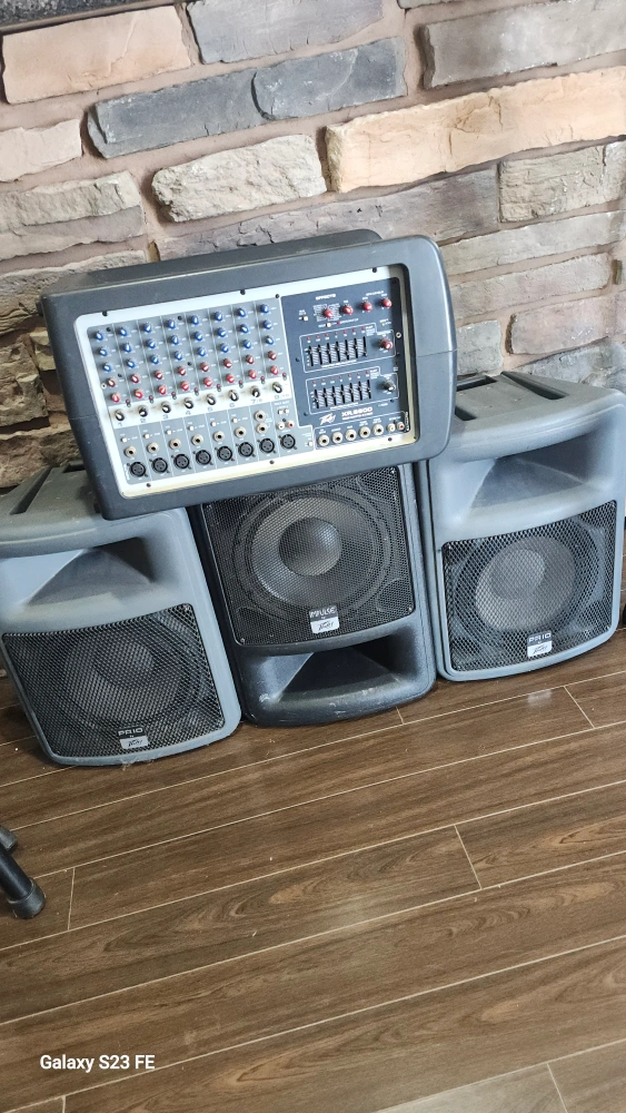 Selling a Peavey XR 8600 powered mixer along with speakers. The mixer is 1200 Watts: 2 x 600. Great for a band or DJ setup!