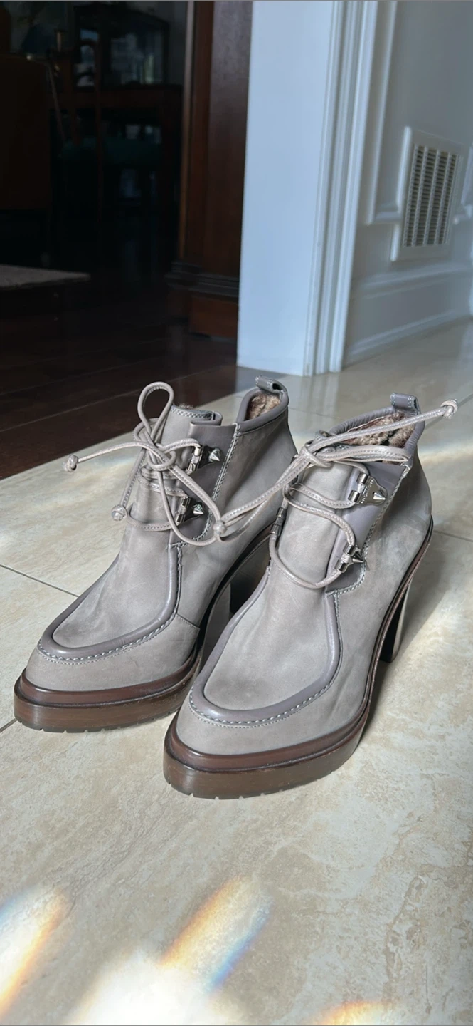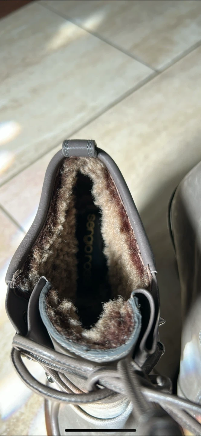 Selling a pair of Sergio Rossi ankle boots in a lovely grey colour! They have a unique lace-up design and a comfortable heel height. Perfect for adding a touch of elegance to any outfit