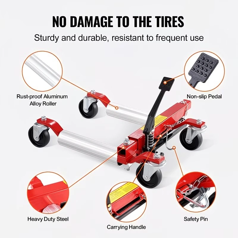 Built to Last Construction: Crafted from high-quality steel, our car positioning dolly is pressure-resistant and sturdy. The roller is made of premium aluminum alloy, which is strong, resistant to deformation, and tire-friendly.