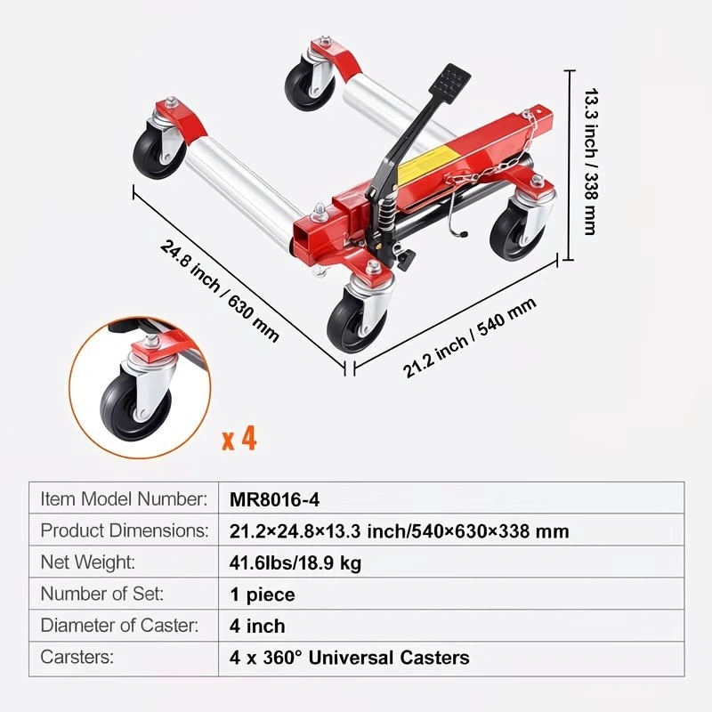 Enhanced Load Capacity: This ratchet wheel dolly easily lifts vehicles to 1500 lbs. Its robust capacity makes it suitable for cars, SUVs, home vehicles, large SUVs, pickups, ATVs, tractors, and more. It facilitates easy movement, maintenance, and tire changes in tight spaces.