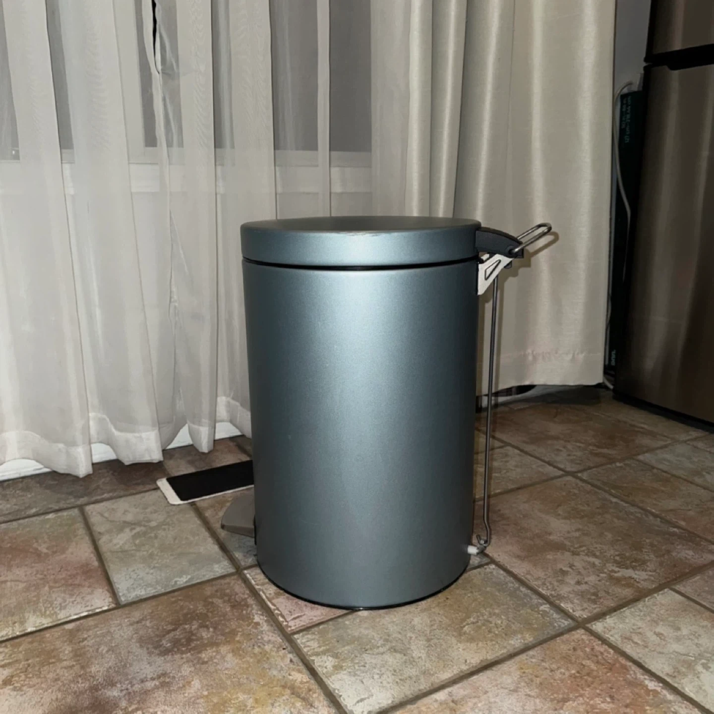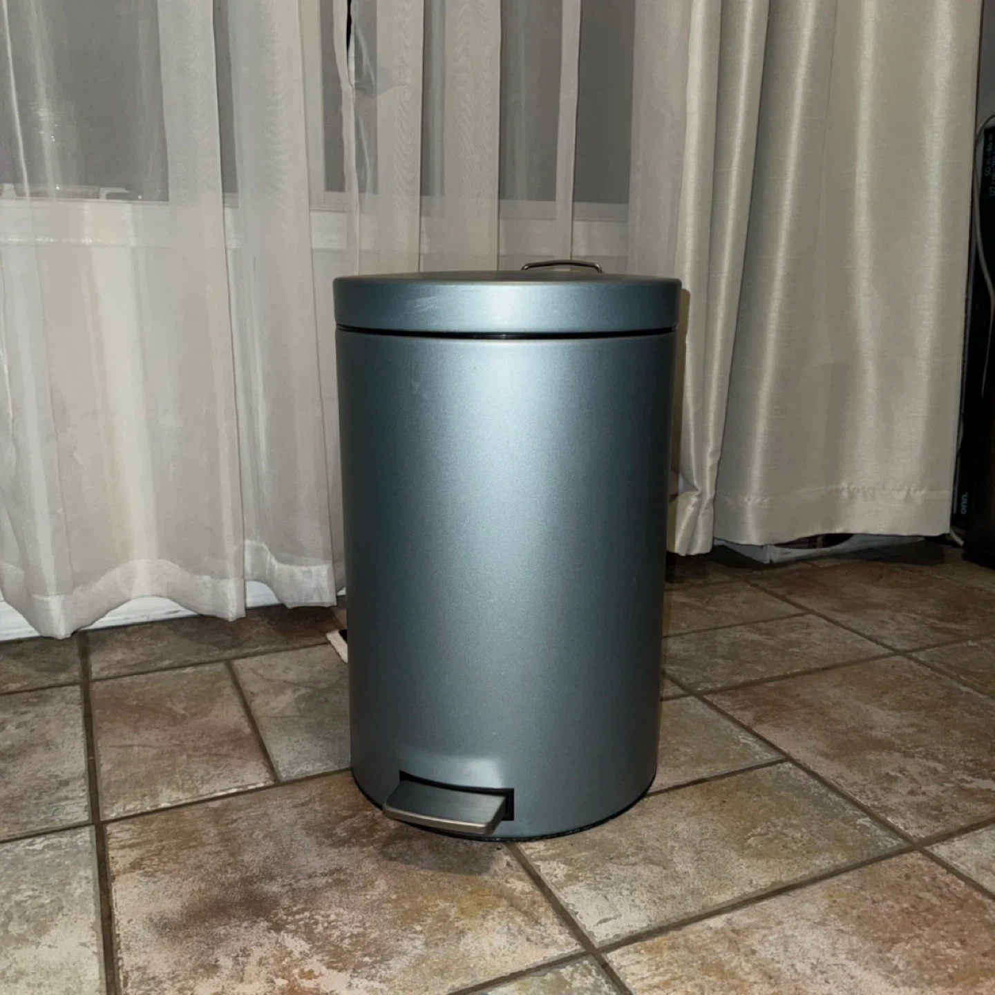 140Selling a grey pedal-step trash can. It's in great shape and ready for a new home! The dimensions are approximately 10.9 inches tall and 8.3 inches in diameter. In great shape .. looking for a new home .. all prices are negotiable .. wishing you a wonderful day โ๏ธ๐