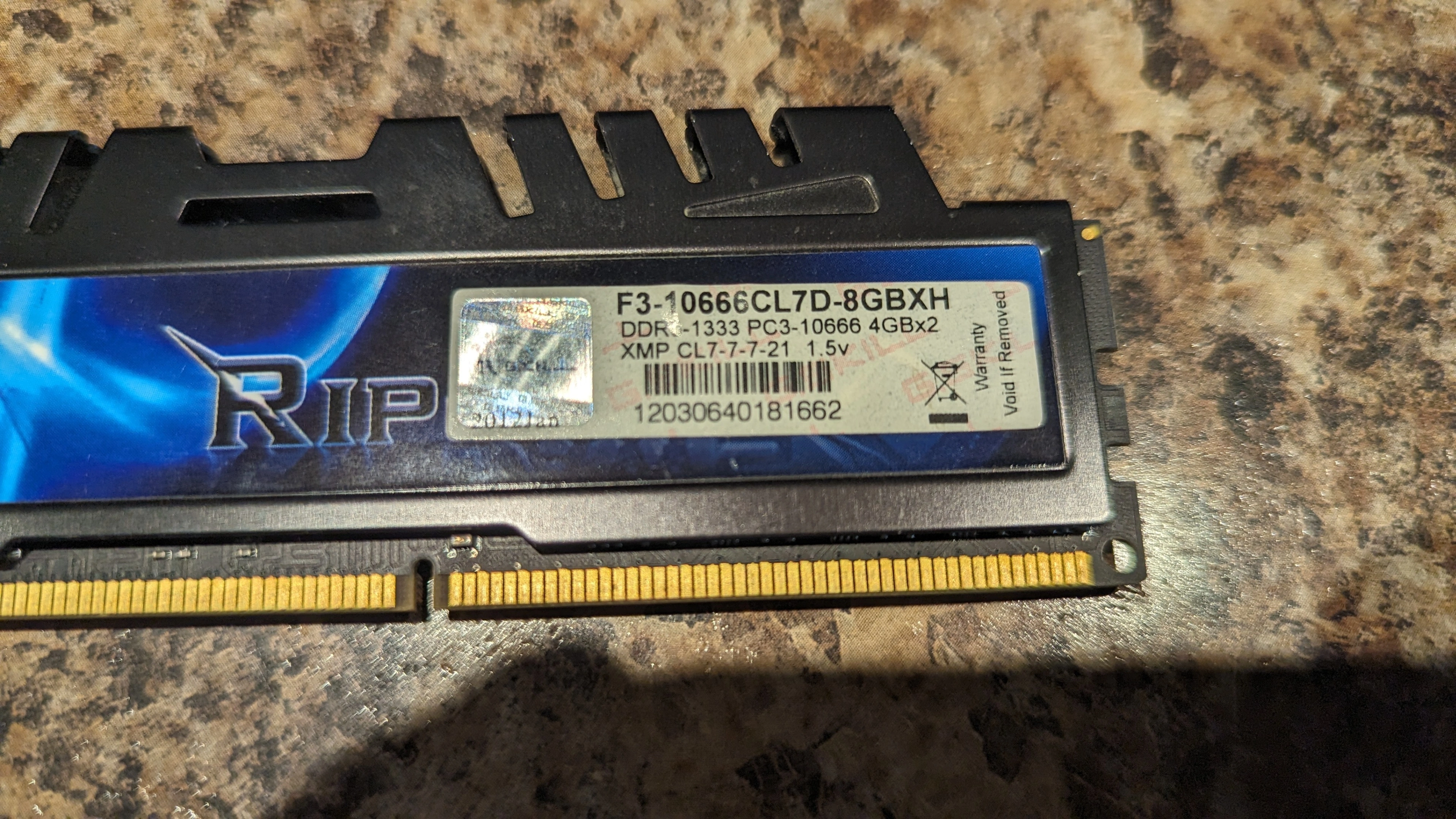 G.Skill RipjawsX DDR3 RAM. Used, in good working condition. Comes as a set of 2 sticks, DDR3 desktop memory, tested and working. Great for upgrading an older Intel or AMD system. $31 CAD.
