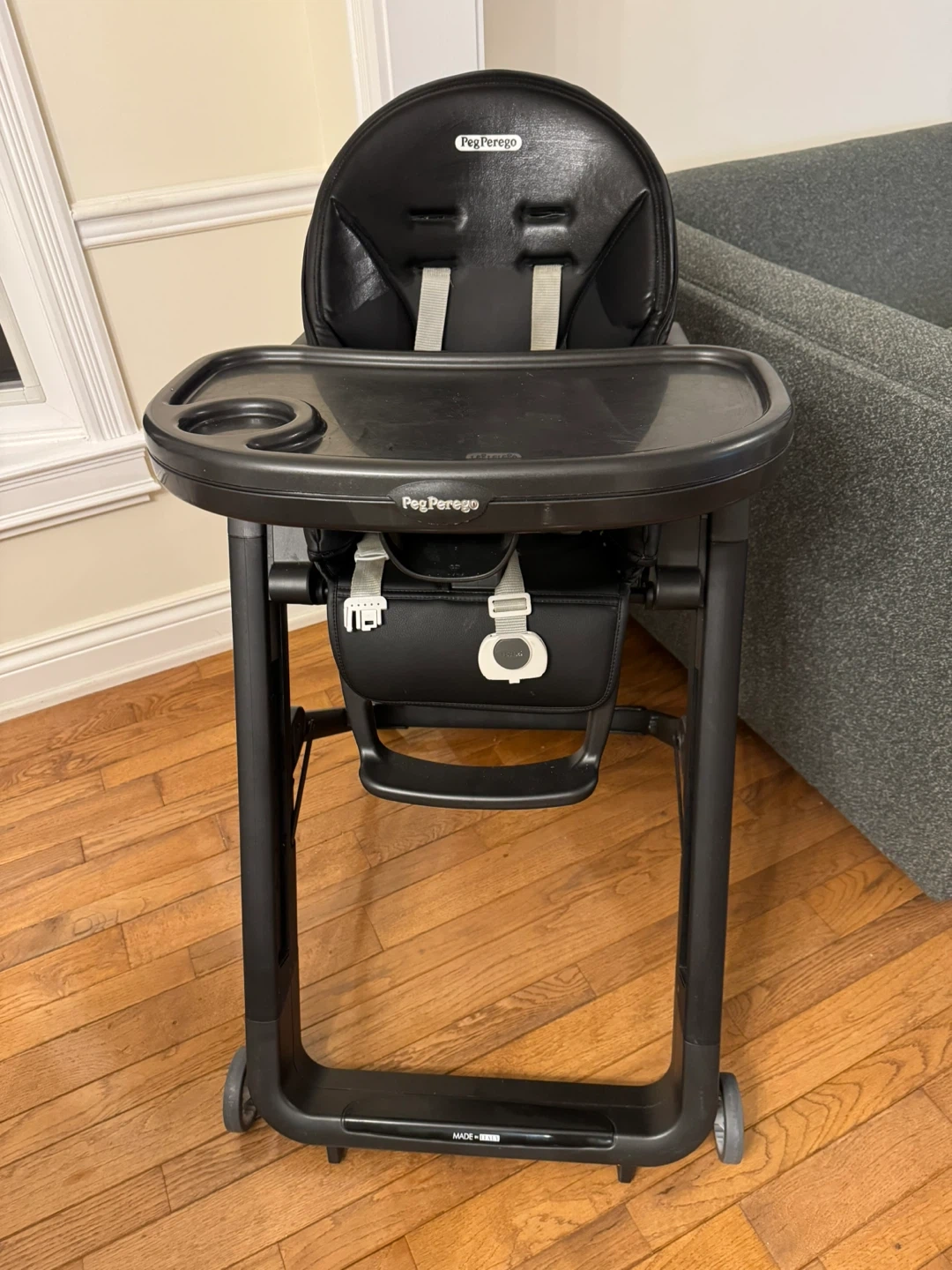26Selling a Peg Perego Siesta high chair in black. It's in great condition and ready for a new home. This high chair is super convenient and easy to clean, making meal times a breeze!