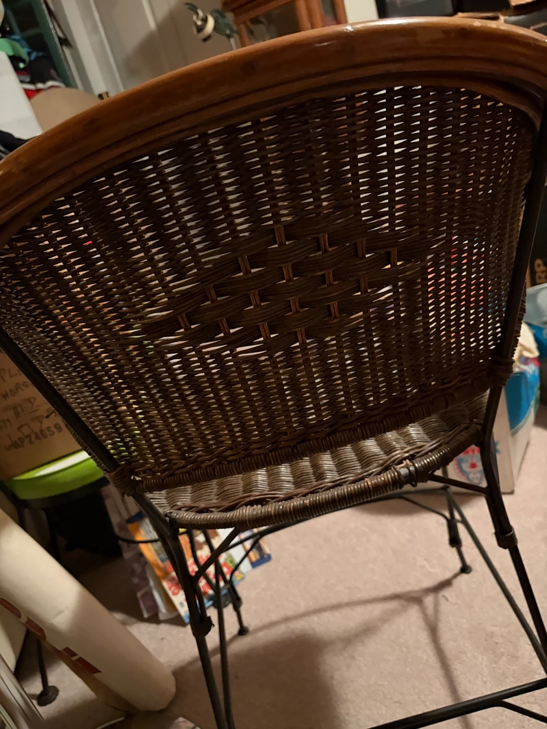 2 Wicker Bar Stools with Wooden Trim