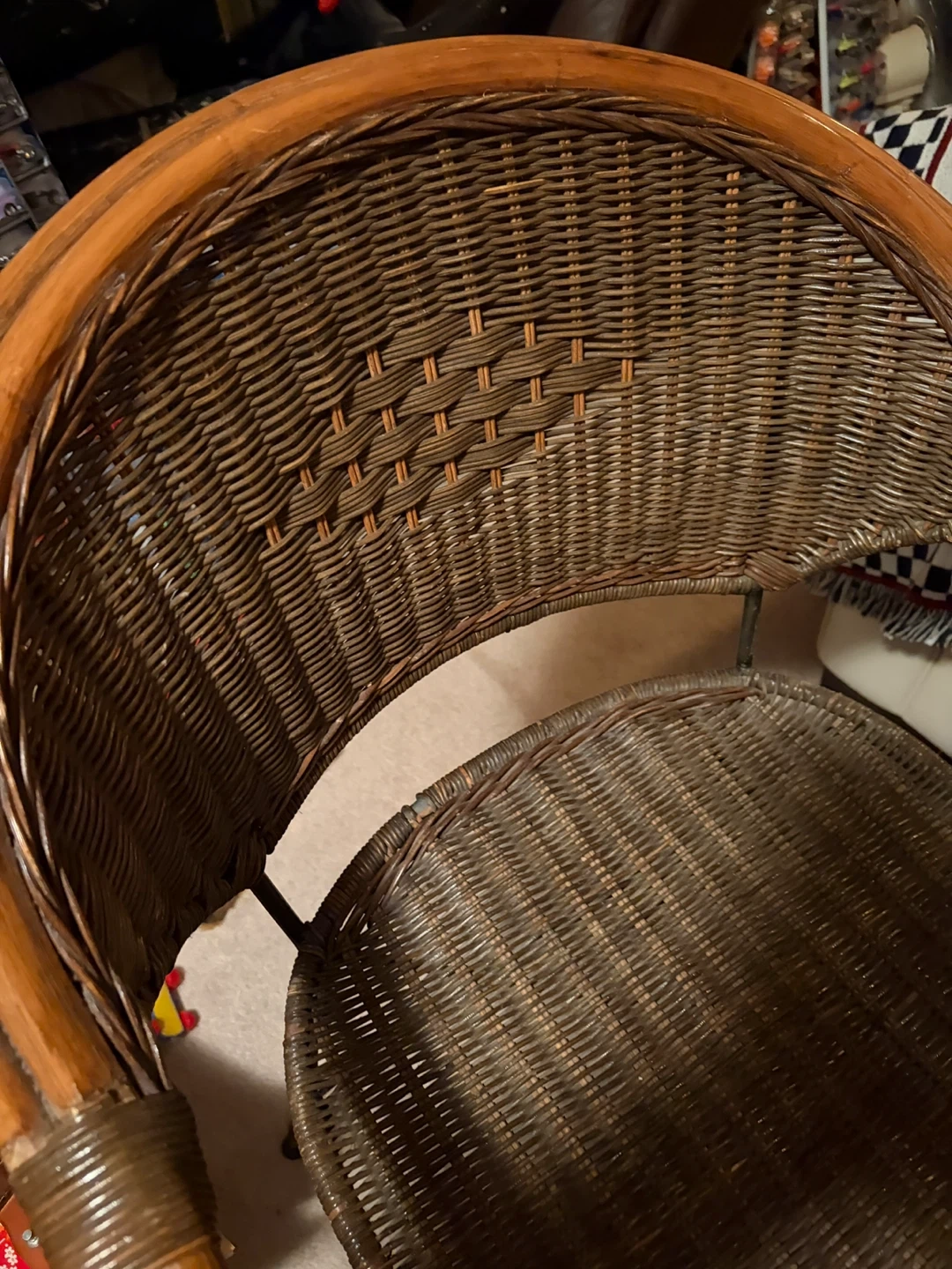 2 Wicker Bar Stools with Wooden Trim
