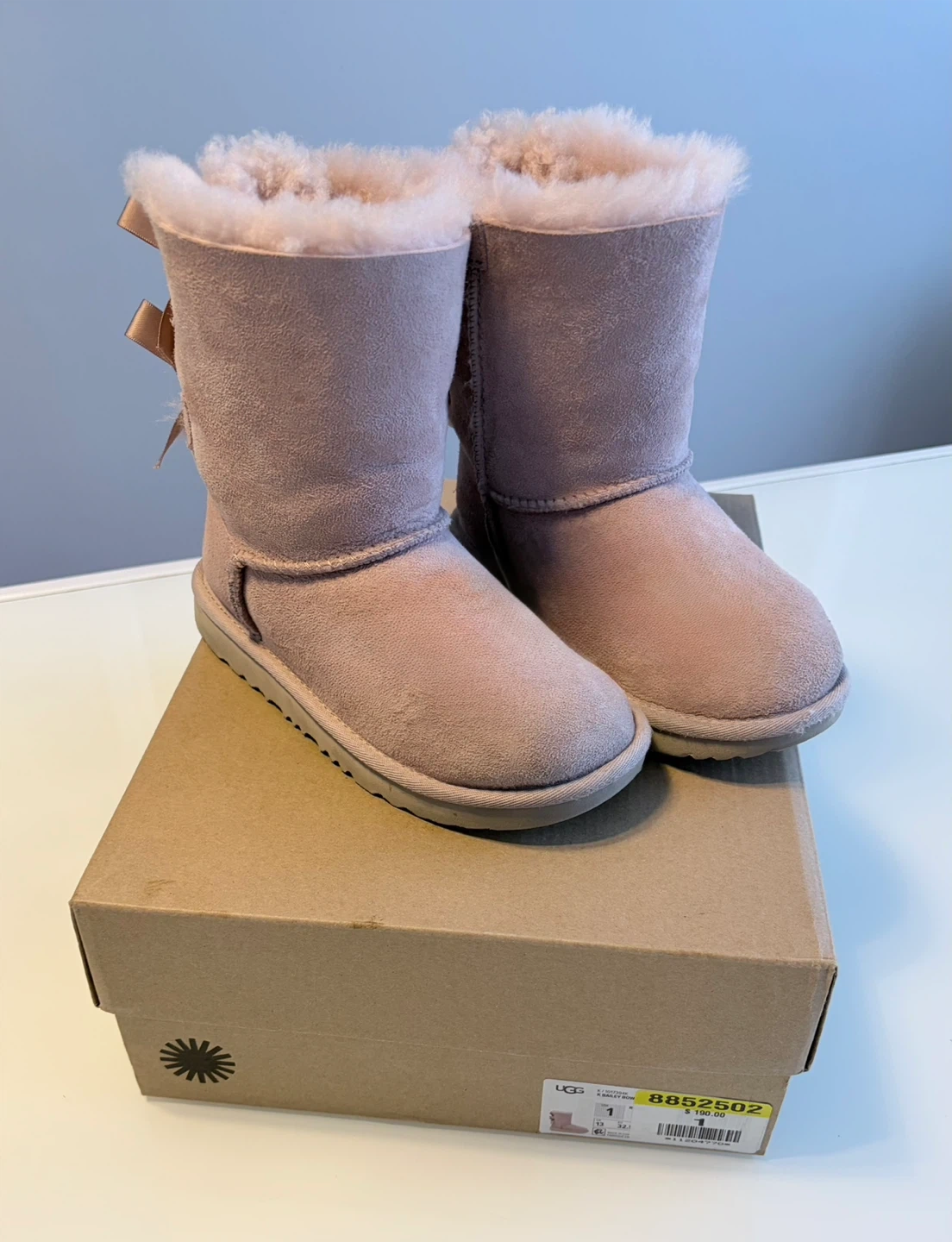 Selling a pair of UGG Mini Bailey Bow II boots in a lovely pink colour! These are a size 1 (USA) and come with the original box. They're in great condition and ready for a new owner!