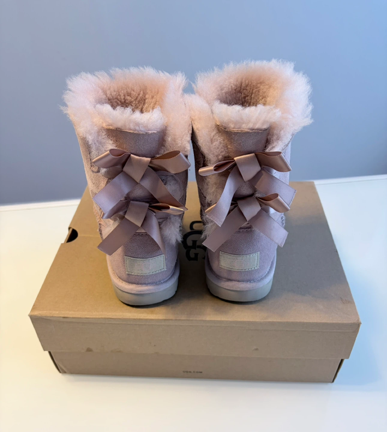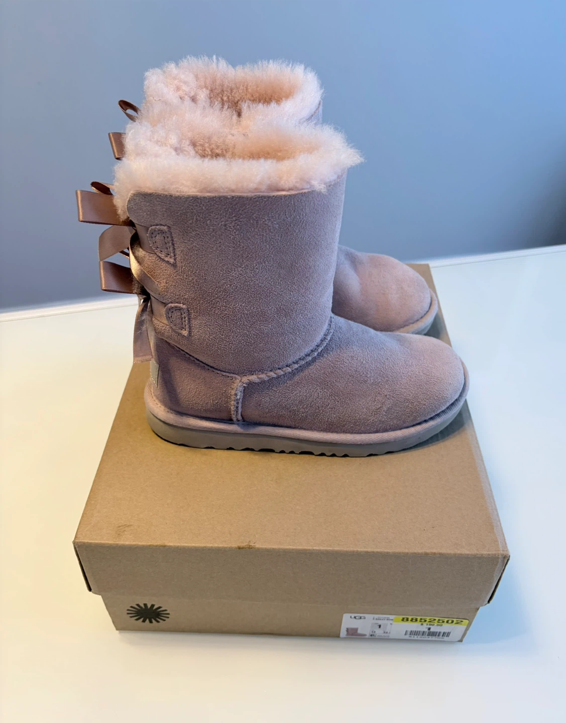 Selling a pair of UGG Mini Bailey Bow II boots in a lovely pink colour! These are a size 1 (USA) and come with the original box. They're in great condition and ready for a new owner!