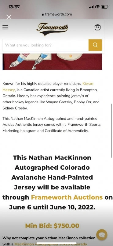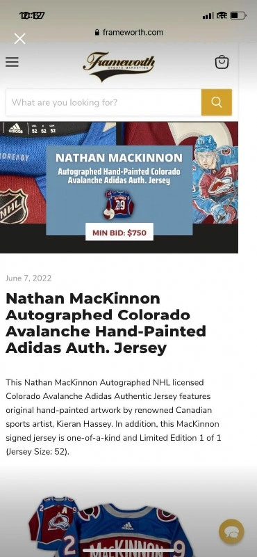 This is a true 1 of 1 autographed hand-painted jersey. Tags are still on the jersey, autographed by Nathan himself. It includes the certificate from Frameworth Sports Marketing. This is an Adidas authentic jersey, not a replica. Information on the Canadian artist is on the website at https://markkannellfineart.com. This jersey was featured on NHL.com. Price is $1200, or a reasonable offer. An additional $100 for the display case. Cash accepted.