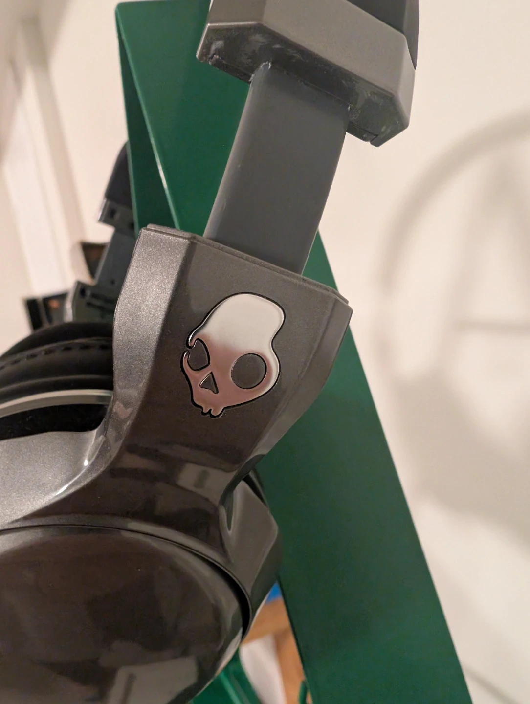Skullcandy Hesh 2 wireless headphones in grey. Features comfortable earcups and a distinct skull logo on the side. Plug in microphone for iPhone and Android.