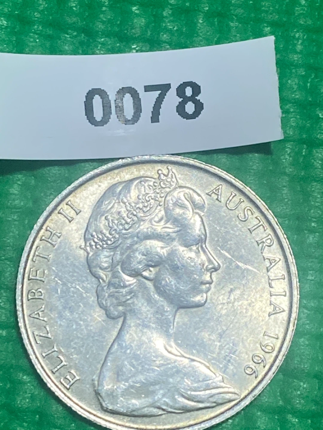 This is a 1966 silver Australian 50 cent coin. It features Queen Elizabeth II on the obverse and the Australian coat of arms on the reverse. A nice addition for any coin collector!