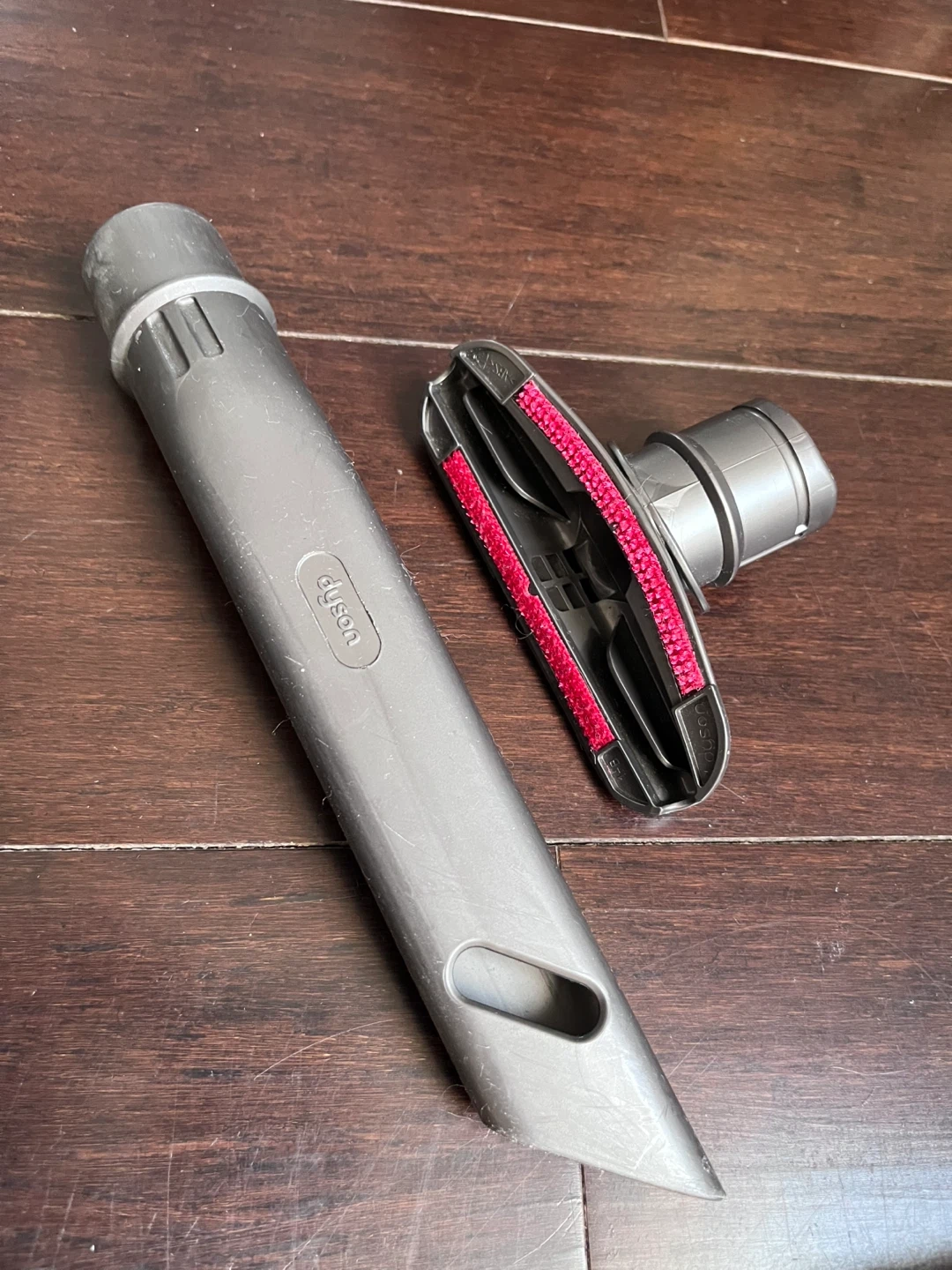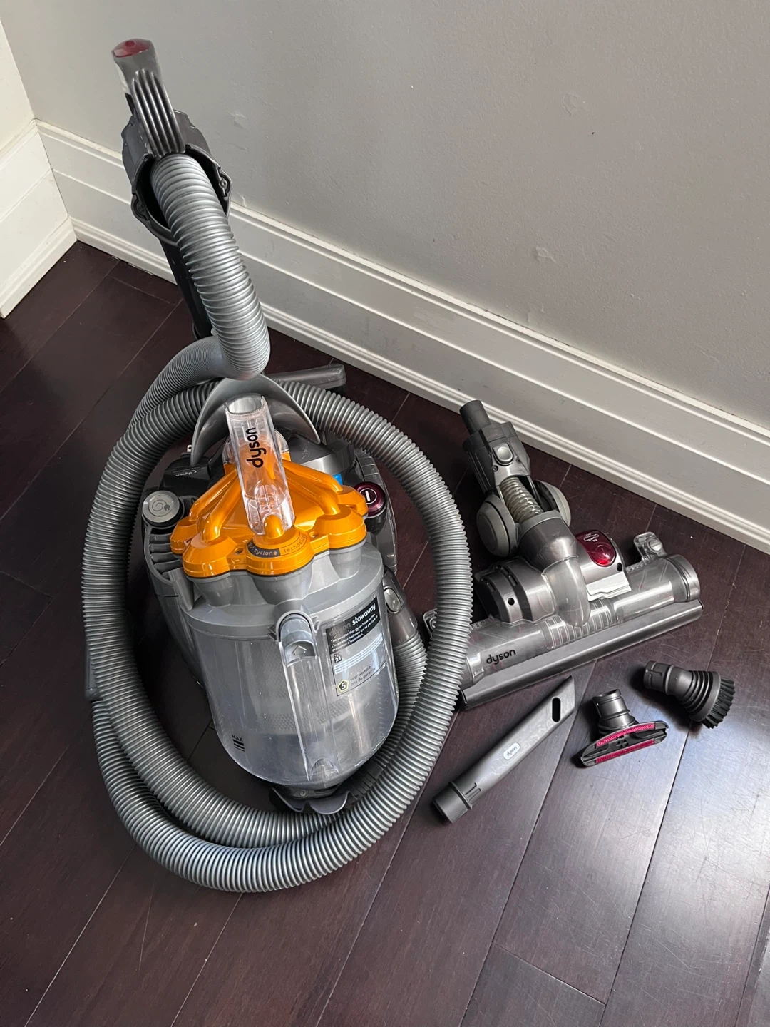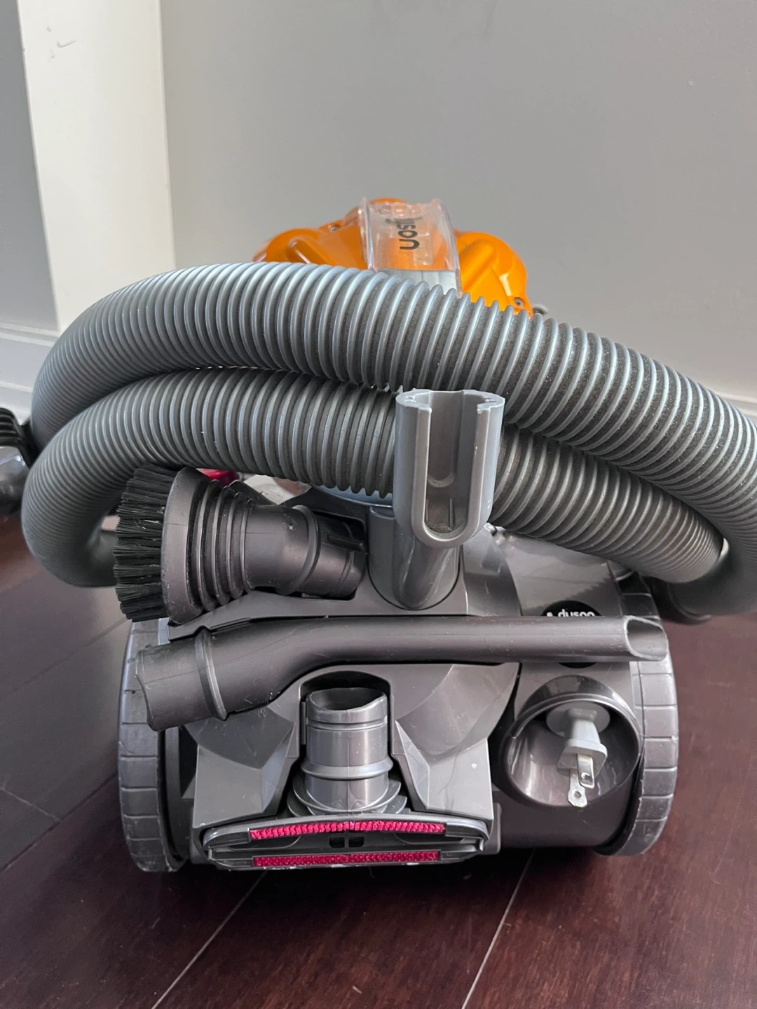 Free Dyson stowaway vacuum for anyone willing to have it repaired. I believe the issue is at the end of the power cord/plug - It had bent over time and would only power in an outlet at a certain angle. Otherwise the motor was powerful as ever and most parts are in good condition. Crack in grey plastic below handle (see photo), but does not affect performance. All parts have been cleaned but could certainly use a deeper clean.