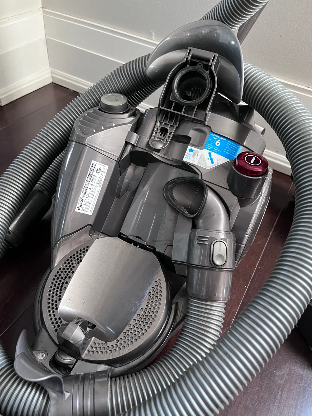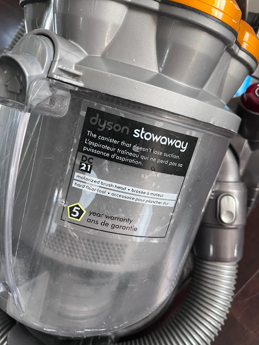 Free Dyson stowaway vacuum for anyone willing to have it repaired. I believe the issue is at the end of the power cord/plug - It had bent over time and would only power in an outlet at a certain angle. Otherwise the motor was powerful as ever and most parts are in good condition. Crack in grey plastic below handle (see photo), but does not affect performance. All parts have been cleaned but could certainly use a deeper clean.