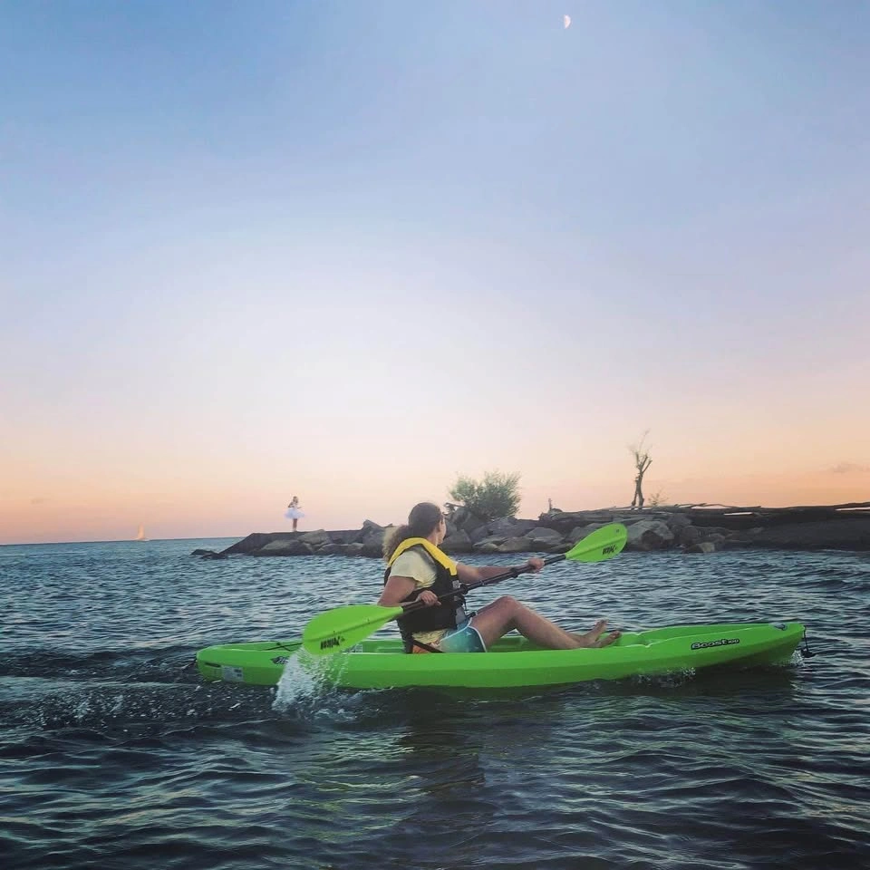 Dog and human not included - but the paddle is! Some lovely adventures had with this kayak. Holds full grown human and 60lb dog no problem! (I’ve also had two adults on it but it sat a little low in the water to go anywhere fast). Great bungees at the back to hold a waterproof bag or cooler! Start your kayak adventures with the Pelican Boost 100 Sit-on 1-Person Kayak. This recreational kayak features an open cockpit and weighs only 50 lbs, perfect for the regular paddler who likes to enjoy various surrounding waterways. Easy to carry, this sit-on-top kayak includes essential features that make your kayaking experience enjoyable, and is made from patented impact-resistant Ram-X™ material for superior durability. If it’s not marked as sold, it’s available! :)