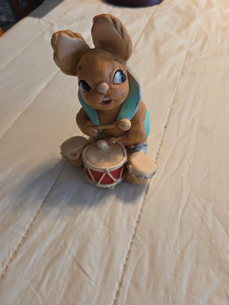 Here's a cute Pendelfin rabbit figurine! It's hand-painted and features a drummer rabbit. A charming addition to any collection or a sweet decorative piece for your home