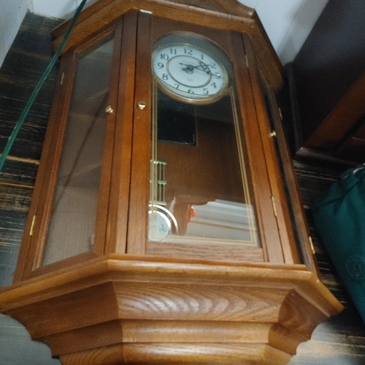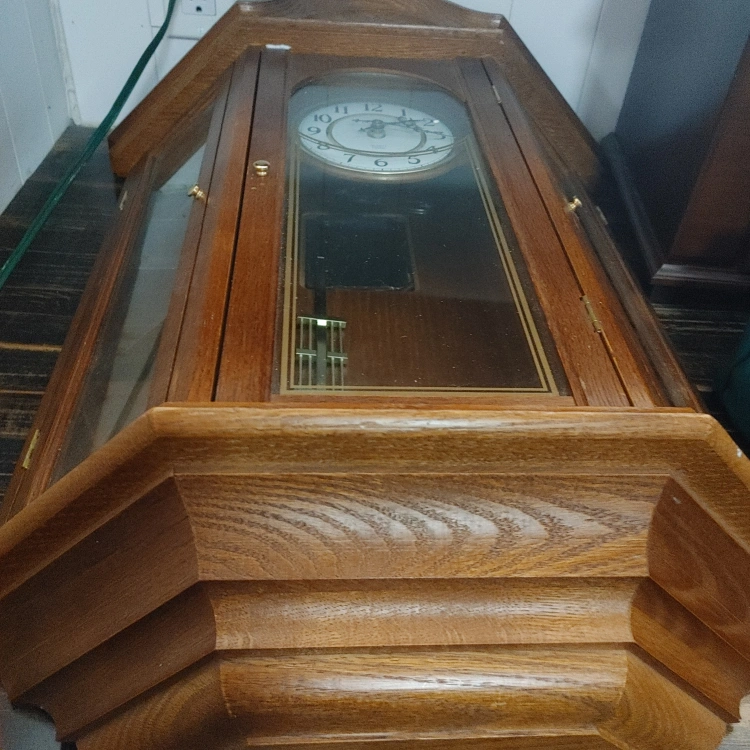 I'm selling a pendulum wall clockwith curio cabinet on the side It's in good condition and would look great in any home