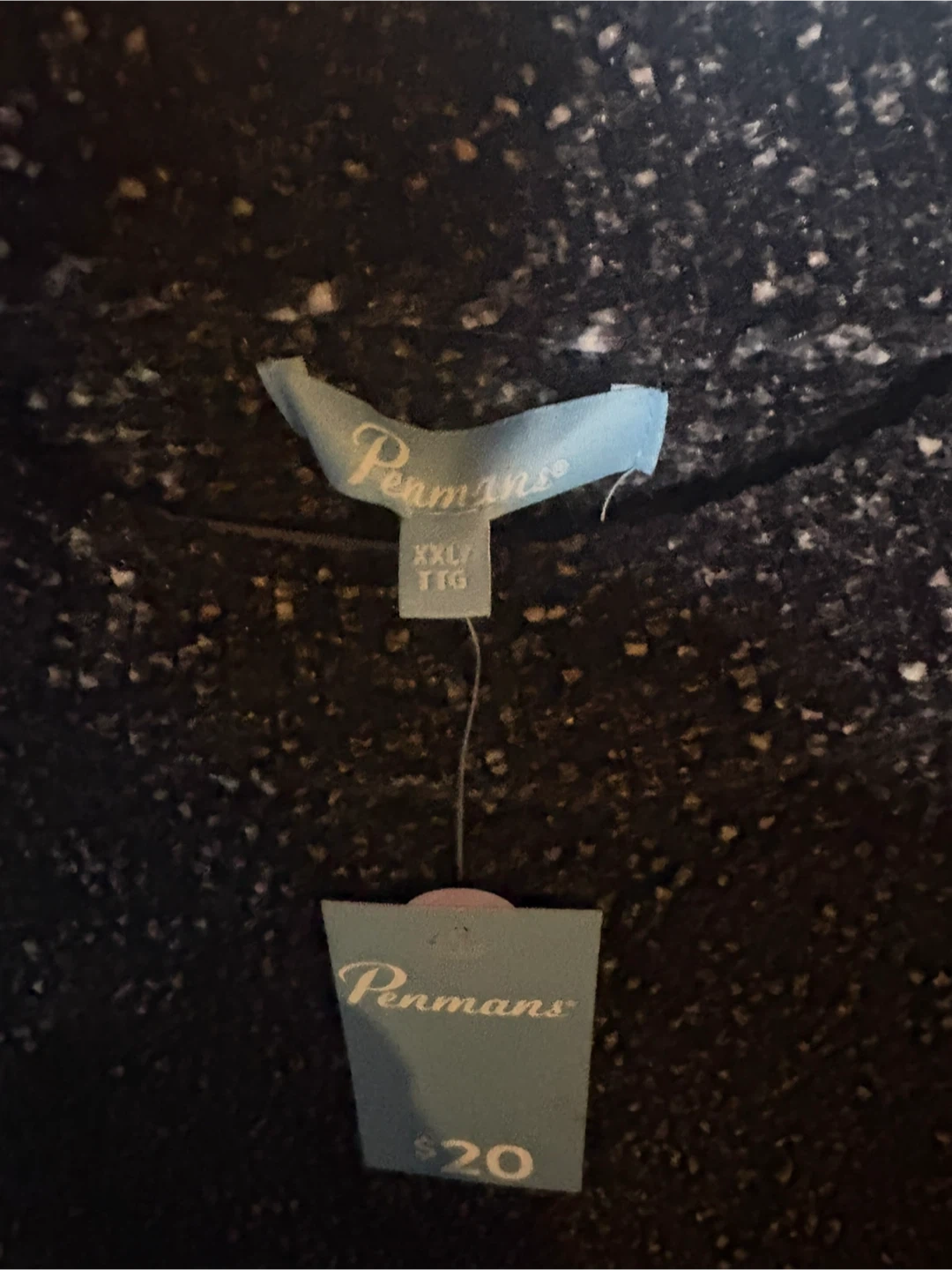 Cozy Penmans sweater in a speckled black colour! The size is XXL. Originally bought for $20