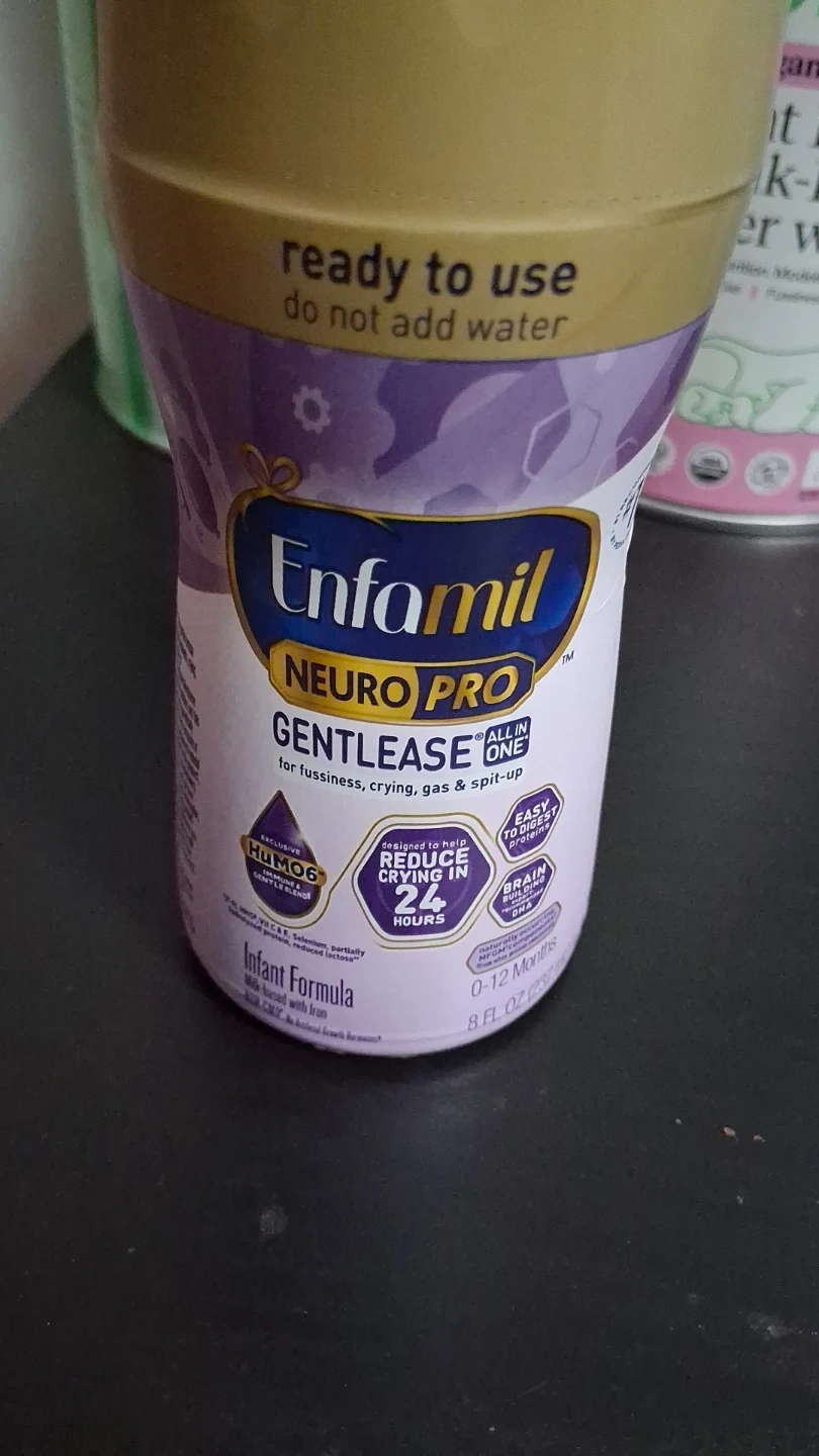 This Enfamil NeuroPro Gentlease infant formula is ready to use and designed to help reduce crying in 24 hours. It's formulated for fussiness, crying, gas, and spit-up. Comes in an 8 FL OZ container for babies 0-12 months.