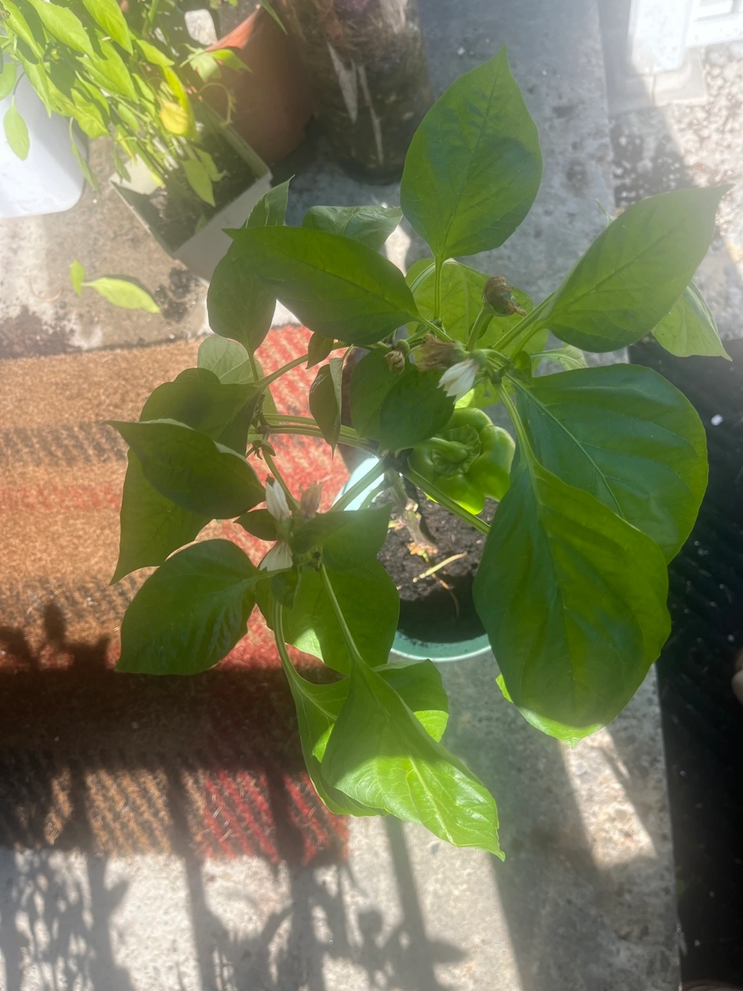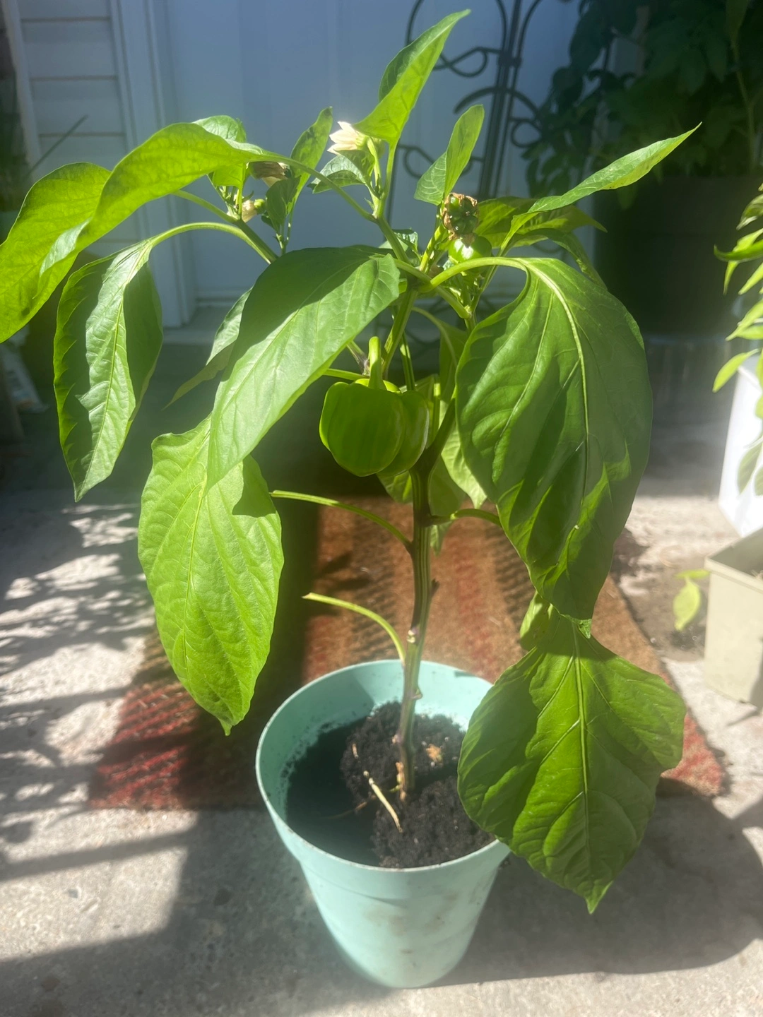 I'm selling a healthy pepper plant. It's currently growing peppers and has lots of leaves. Perfect for your garden or balcony!