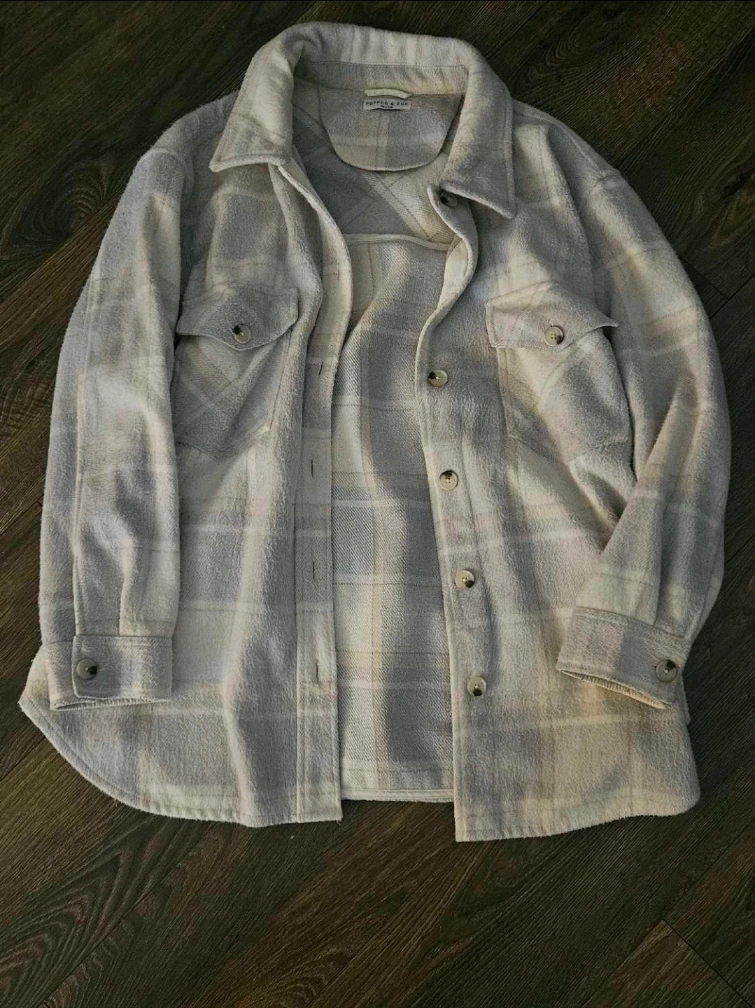 10Cozy Pepper & Zoe plaid shacket in size XXL! This stylish piece is perfect for layering during the cooler months. It's in great condition and ready for a new home