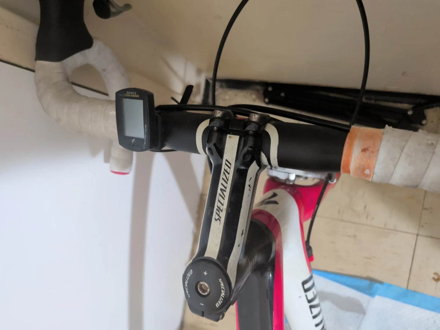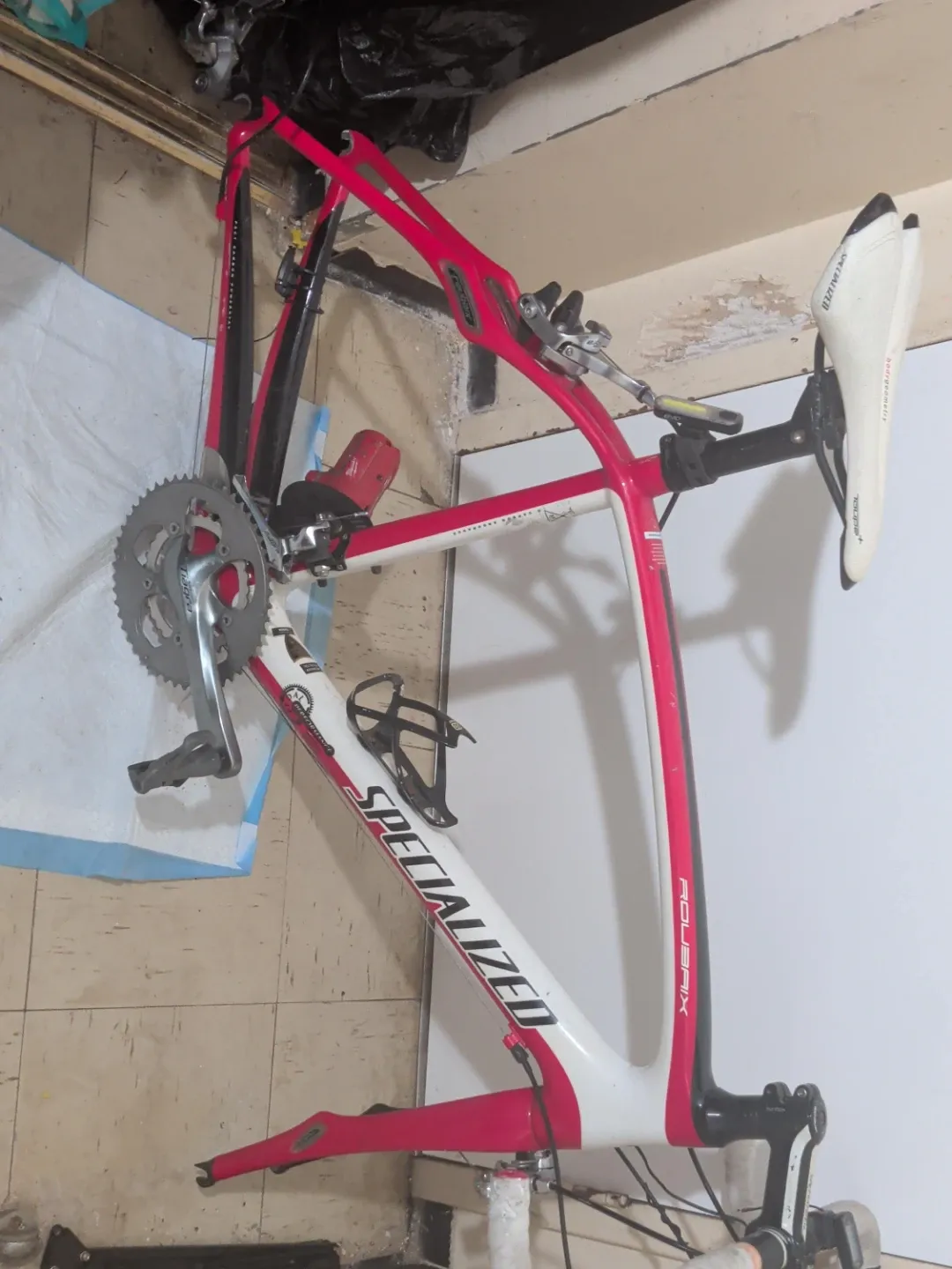 Specialized Roubaix carbon road bike frame. Size 54cm. Comes with a Specialized saddle and handlebars with tape. Includes a bicycle computer.