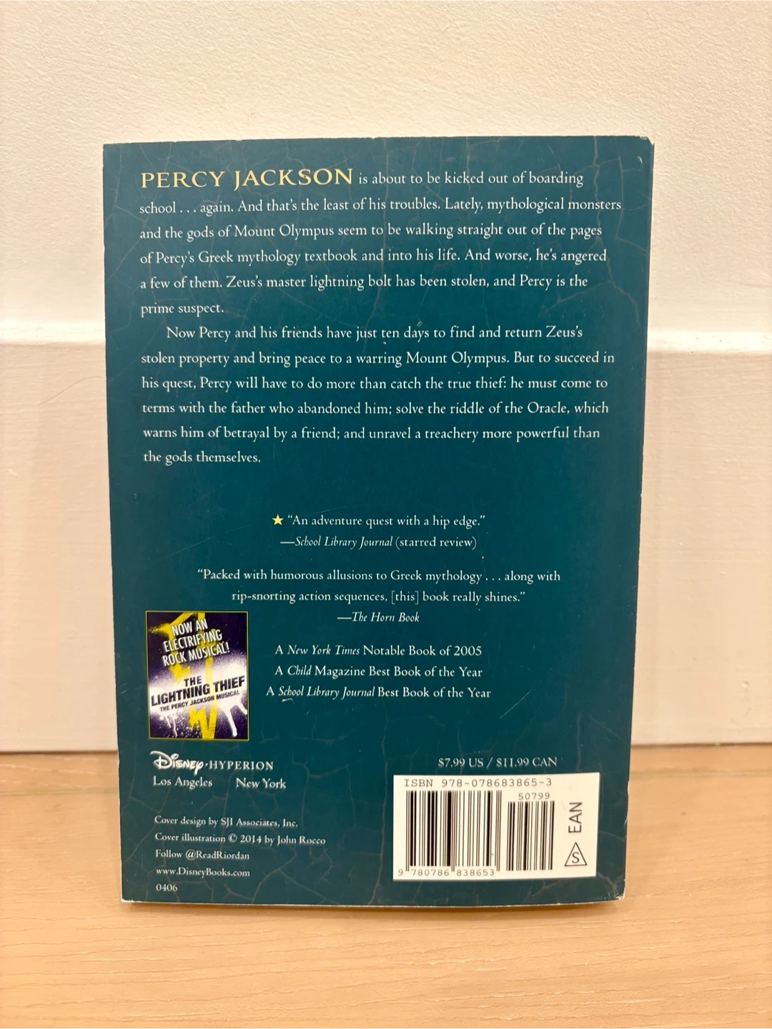 143Selling the first book in the Percy Jackson and the Olympians series, The Lightning Thief! It's a great read for anyone interested in Greek mythology and adventure. This New York Times #1 best-selling series book is ready for a new home