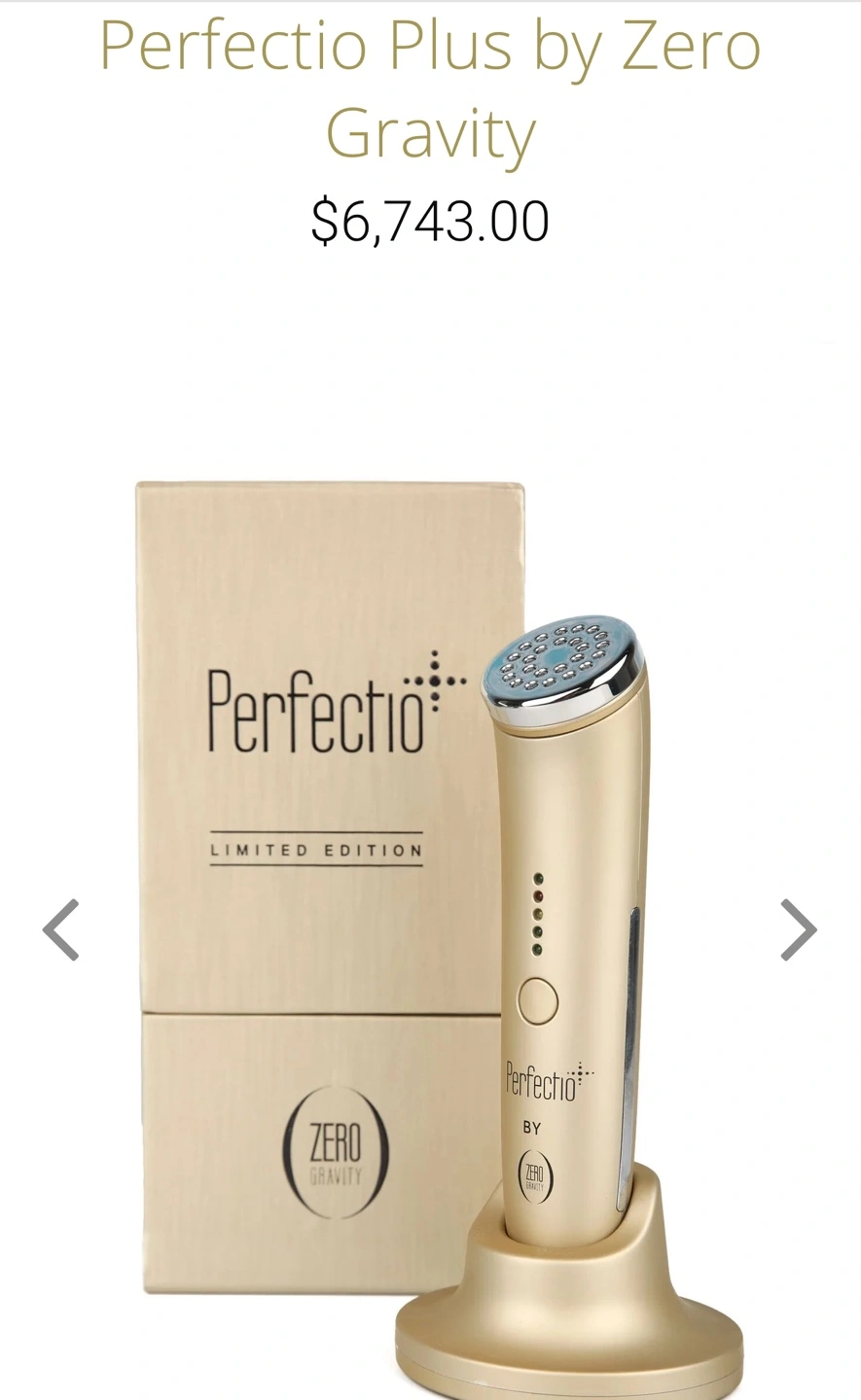 244Perfectio Plus by Zero Gravity - Limited Edition Gold-coloured LED light therapy device. Includes charging stand and original box. Limited edition. Uses red and infrared light. In Excellent Condition / Barely Used!