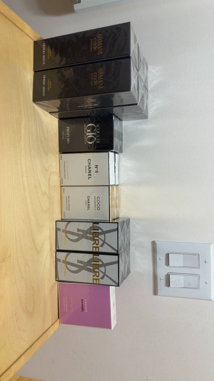 5Selling a variety of perfumes including: - Giorgio Armani Code Profumo - Acqua Di Gio Giorgio Armani - Chanel N°5 - Chanel Coco Mademoiselle - Yves Saint Laurent Libre - Chanel Chance All are eau de parfum and come in 100ml bottles