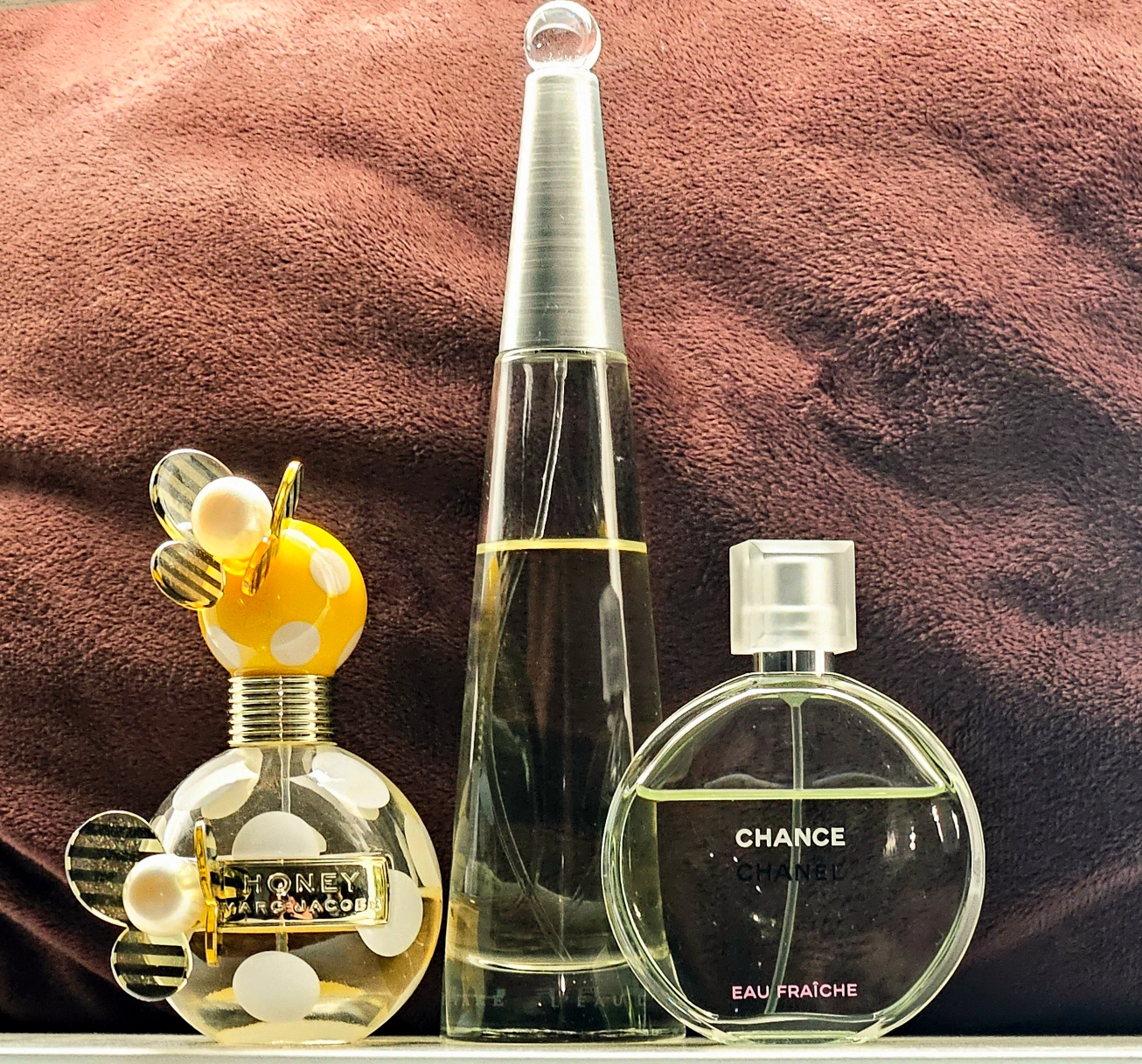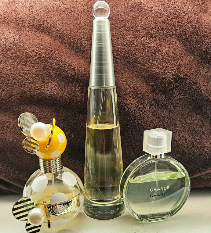 10Chanel Chance Eau Fraiche, Marc Jacobs Honey, Issey Miyake Eau De Parfume. Please check the photos for the ml and what's left in each bottle. Selling all together!