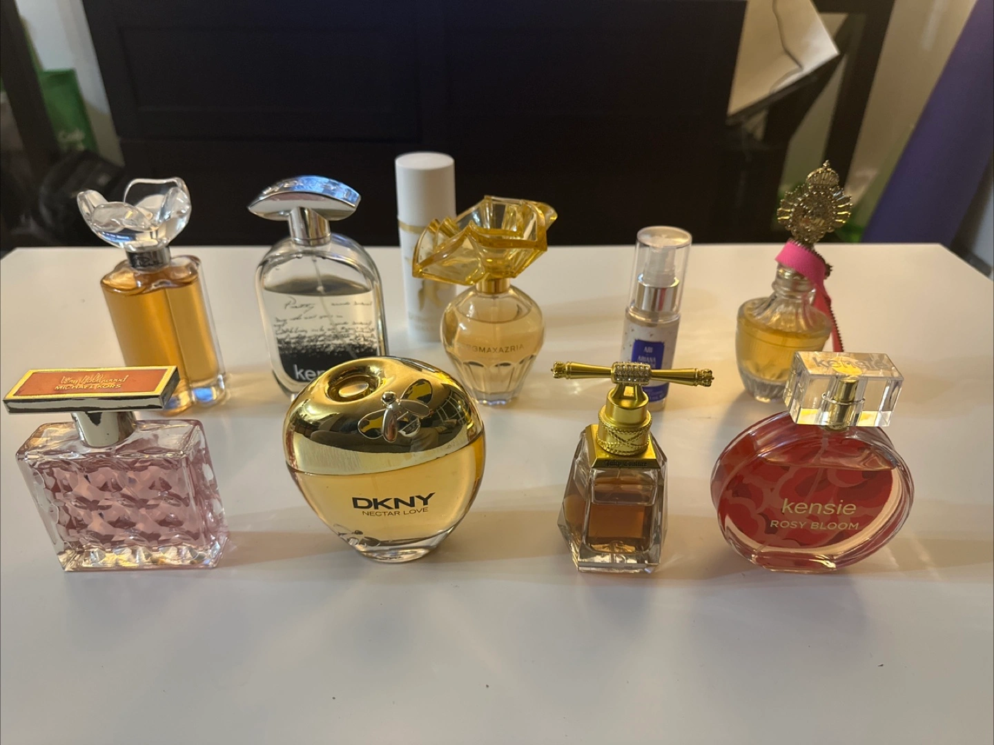 Selling a collection of perfume bottles, including: - Juicy Couture - Kensie (Rosy Bloom and other) - DKNY Nectar Love - Michael Kors (Very Hollywood) Great for collectors or those looking to try new scents 50$ each or buy all at bulk discount price.