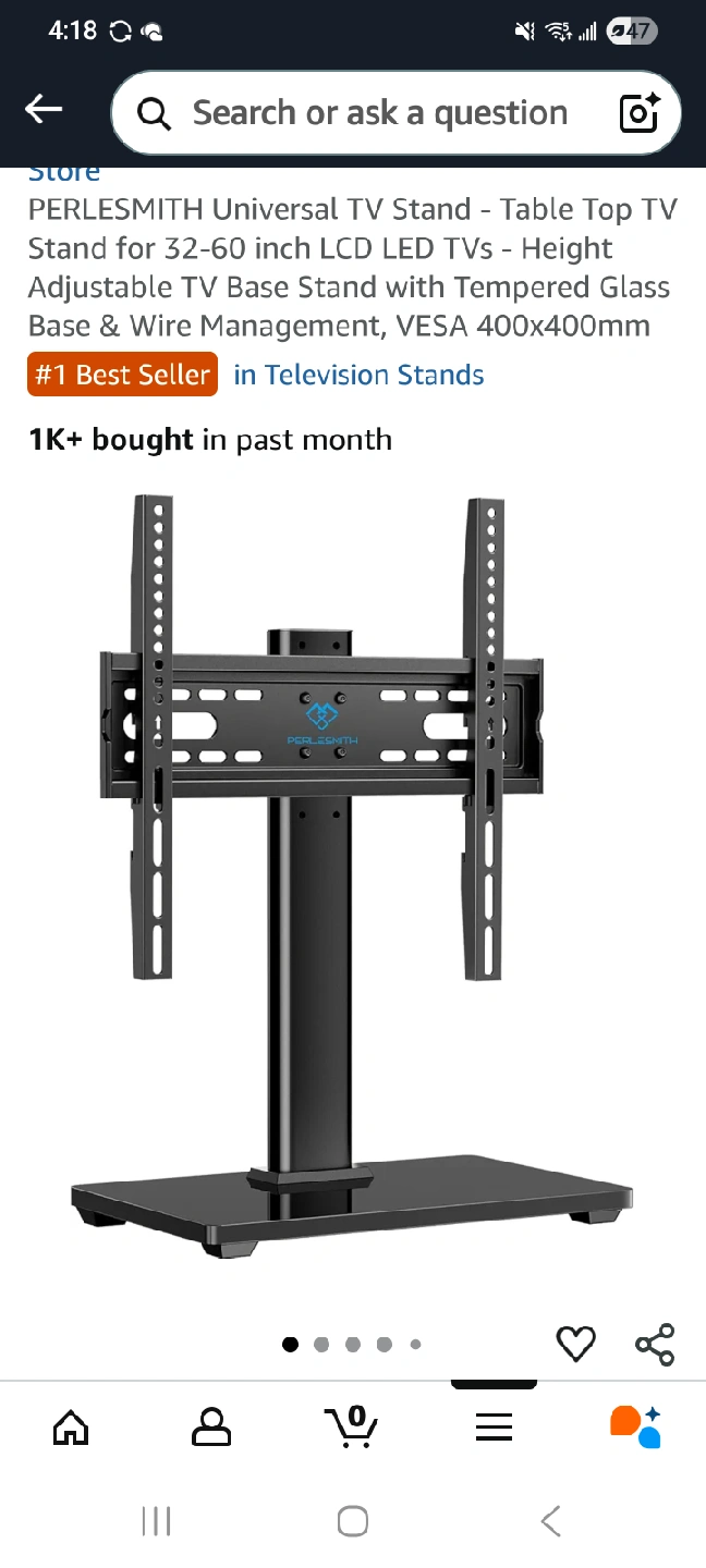 Selling a PERLESMITH universal TV stand! It's suitable for 32-60 inch LCD LED TVs. It features a height adjustable TV base stand with a tempered glass base and wire management. VESA compatible up to 400x400mm. Originally listed for $49.99!