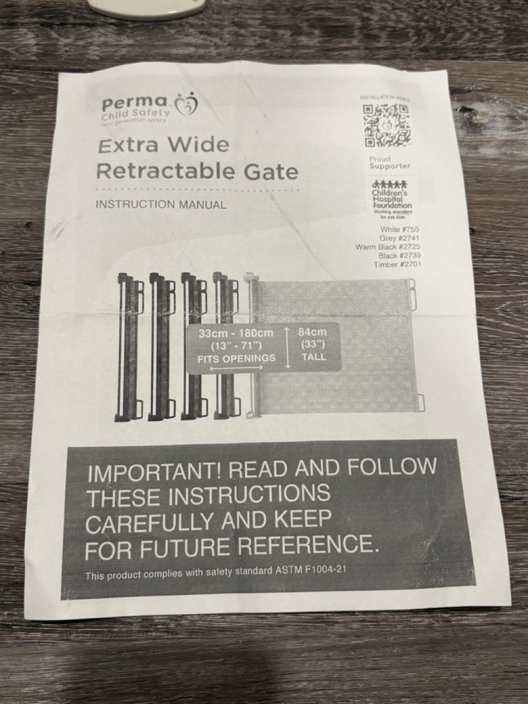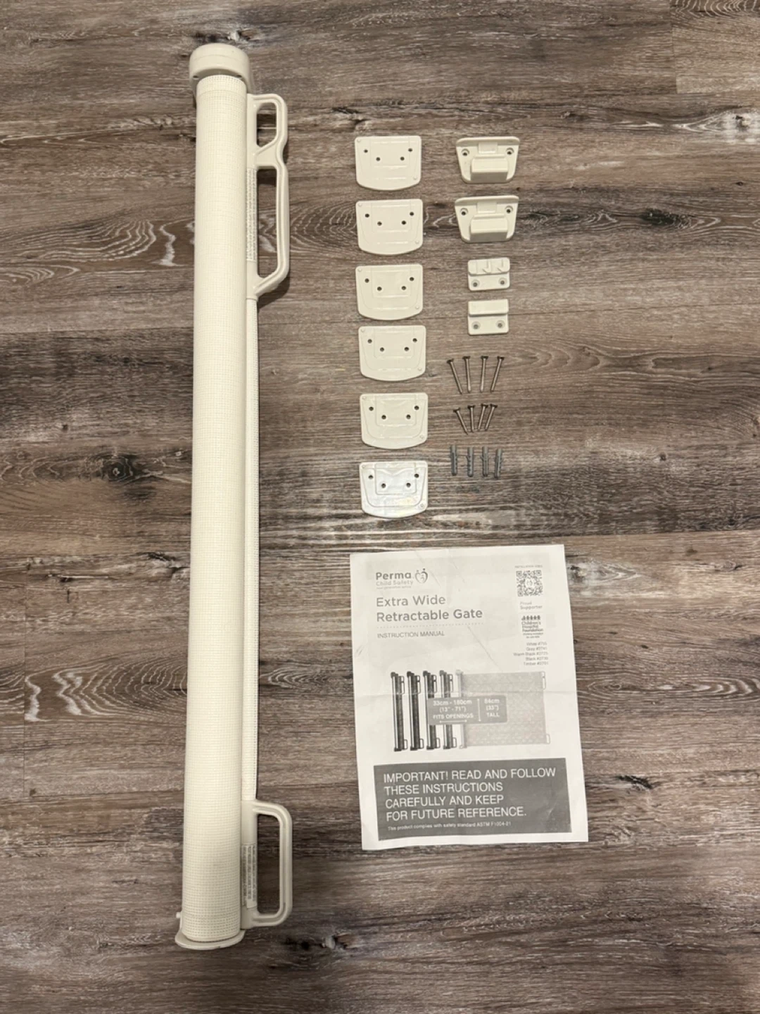 88Selling a Perma Child Safety Extra Wide Retractable Gate in white. It fits openings from 33cm to 180cm (13"-71") and is 84cm (33") tall. Included are the upper and lower gate mounts, wall spacers, catch mounts, wall plugs, and upper and lower mount screws. Comes with the instruction manual Pick up Sage Hill NW Pet and smoke free home Check out my other listings Cash only