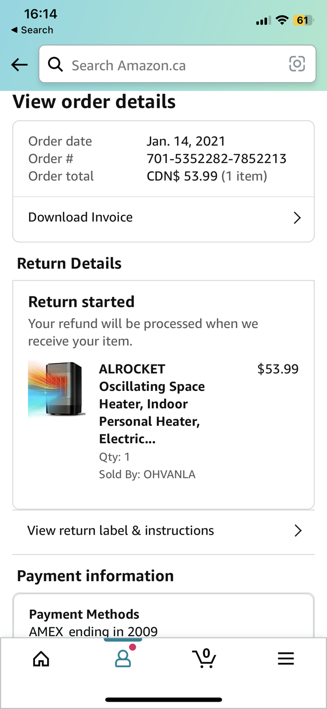 Small personal electrical fan heater 15 cm x 15cm x 20 cm Used only 1 winter