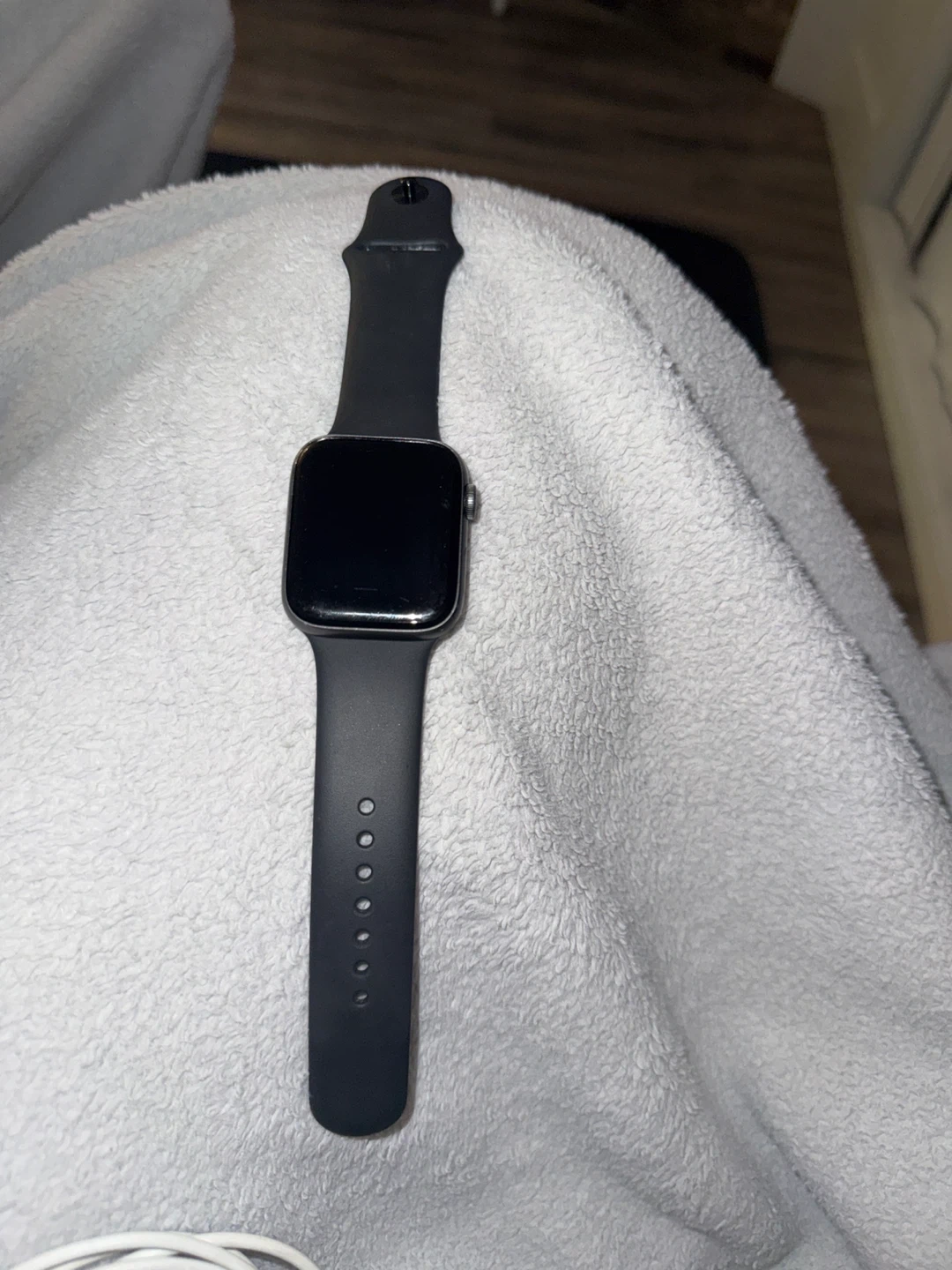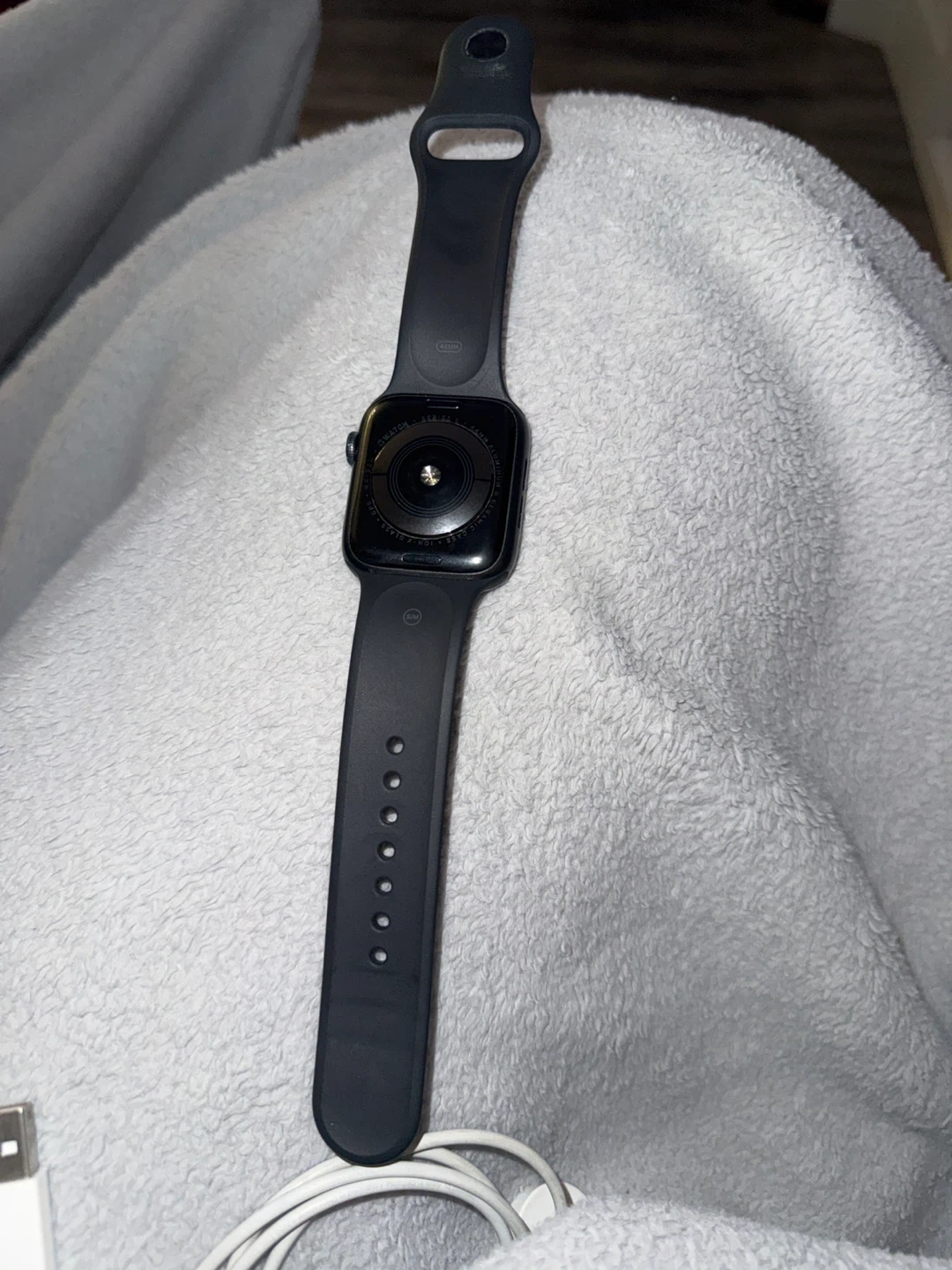 Selling an Apple Watch Series 5, size 44mm. Comes with a charger cable and extra replacement band so it's ready to go! It's in good condition and looking for a new wrist to call home. It’s compatible with iPhone 6s and newer models running iOS 13 or later.
