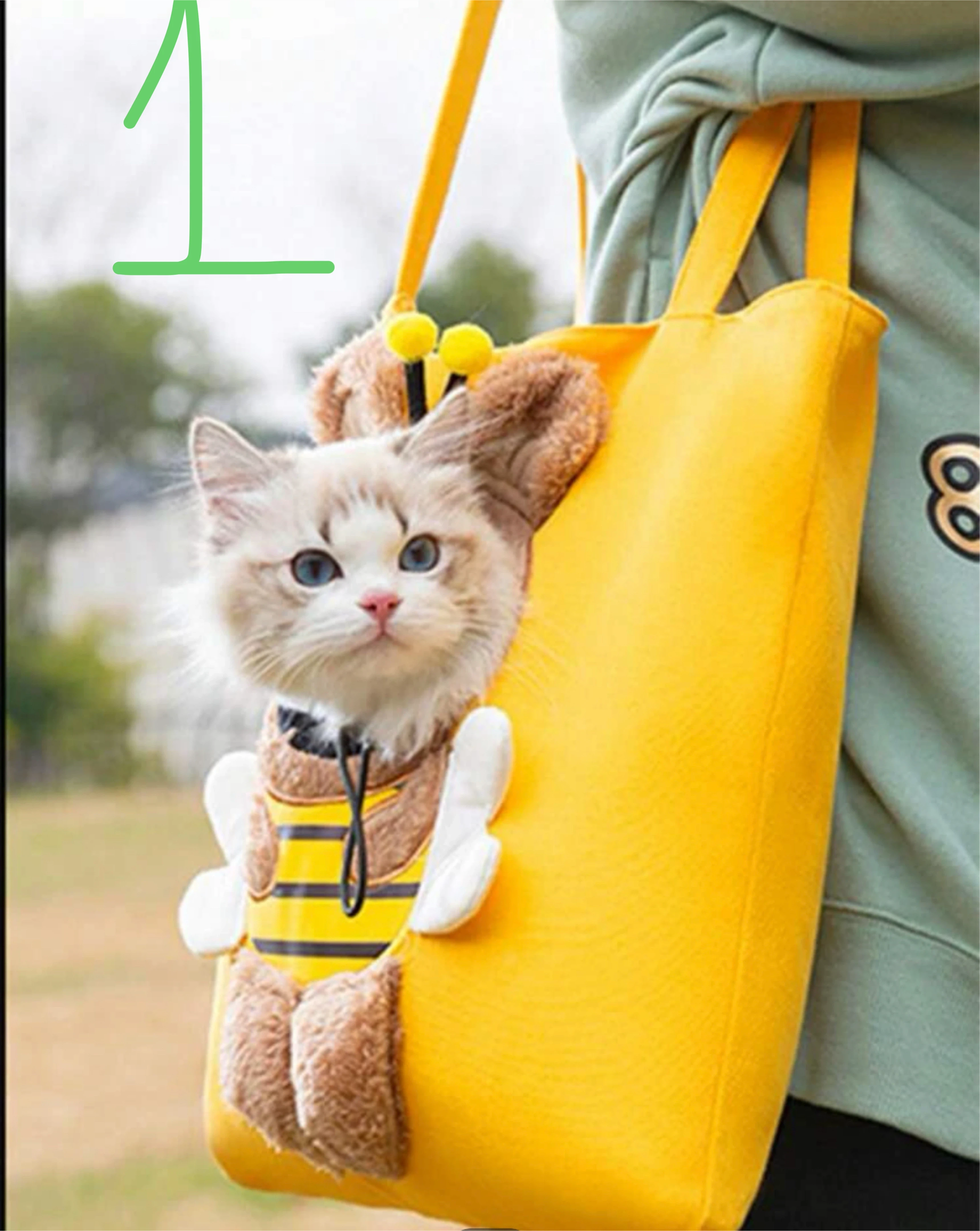 cute cat carrier backpack! It features a fun bee costume design for your furry friend. There is an internal locker that you can attach to the pet collar. Used only twice , unfortunately my cat outgrow both bags. Bag 1 - 10 cad Bag 2 -10 cad