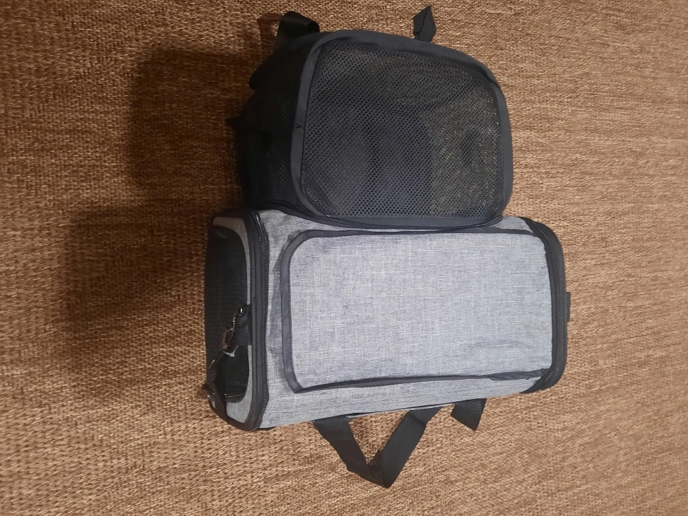 140Selling a pet carrier backpack in grey and black! It looks to be in great condition and ready for your furry friend's adventures. Perfect for taking your pet on walks or trips